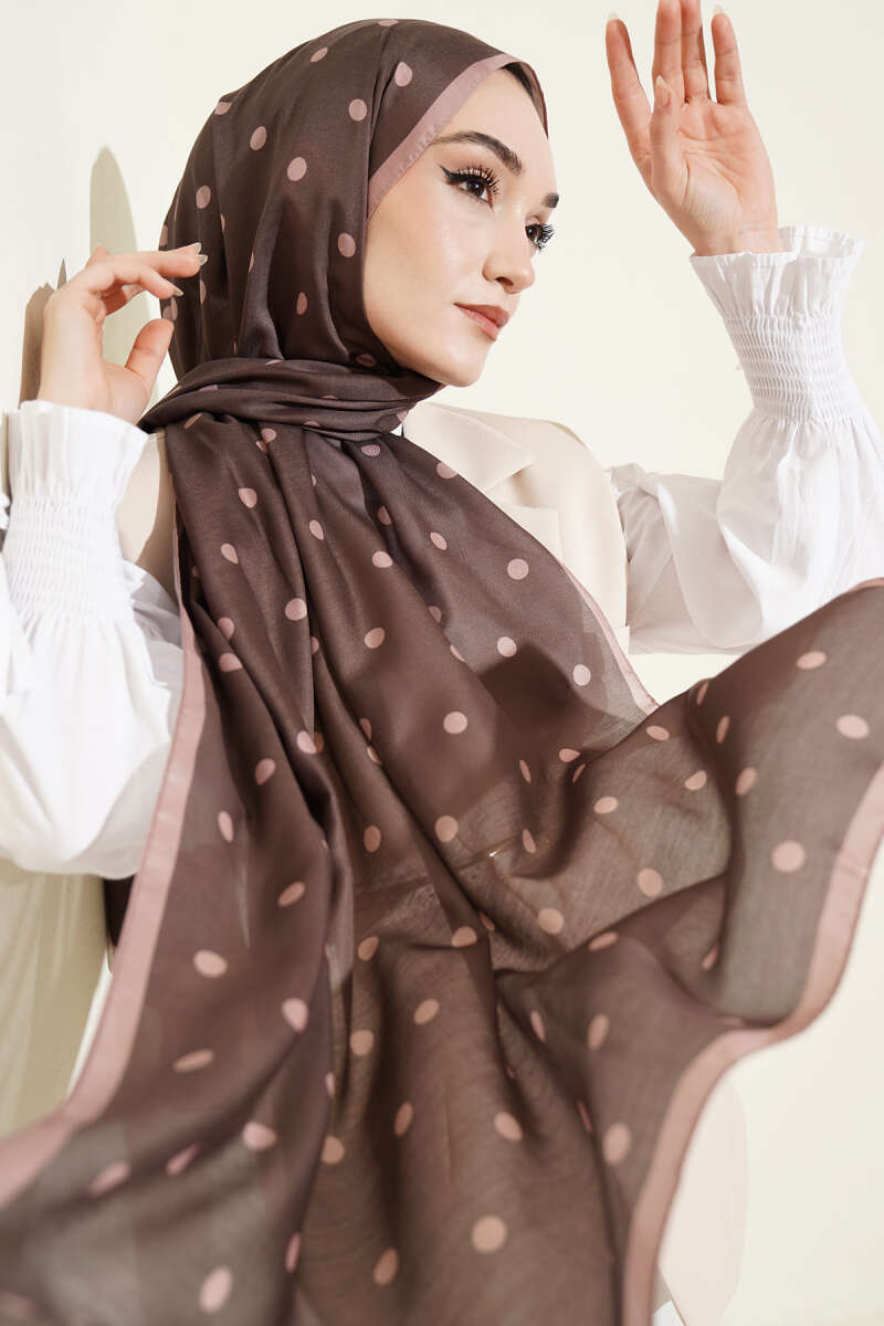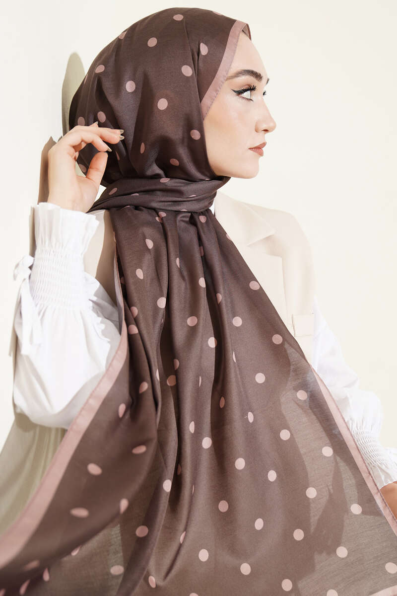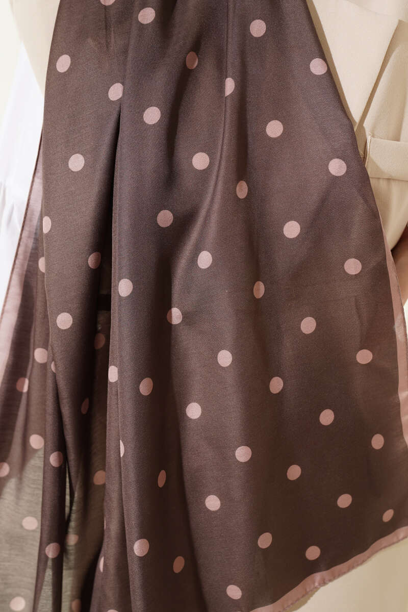 Soft Floral Baskılı Pamuklu Eşarp Acı Kahve