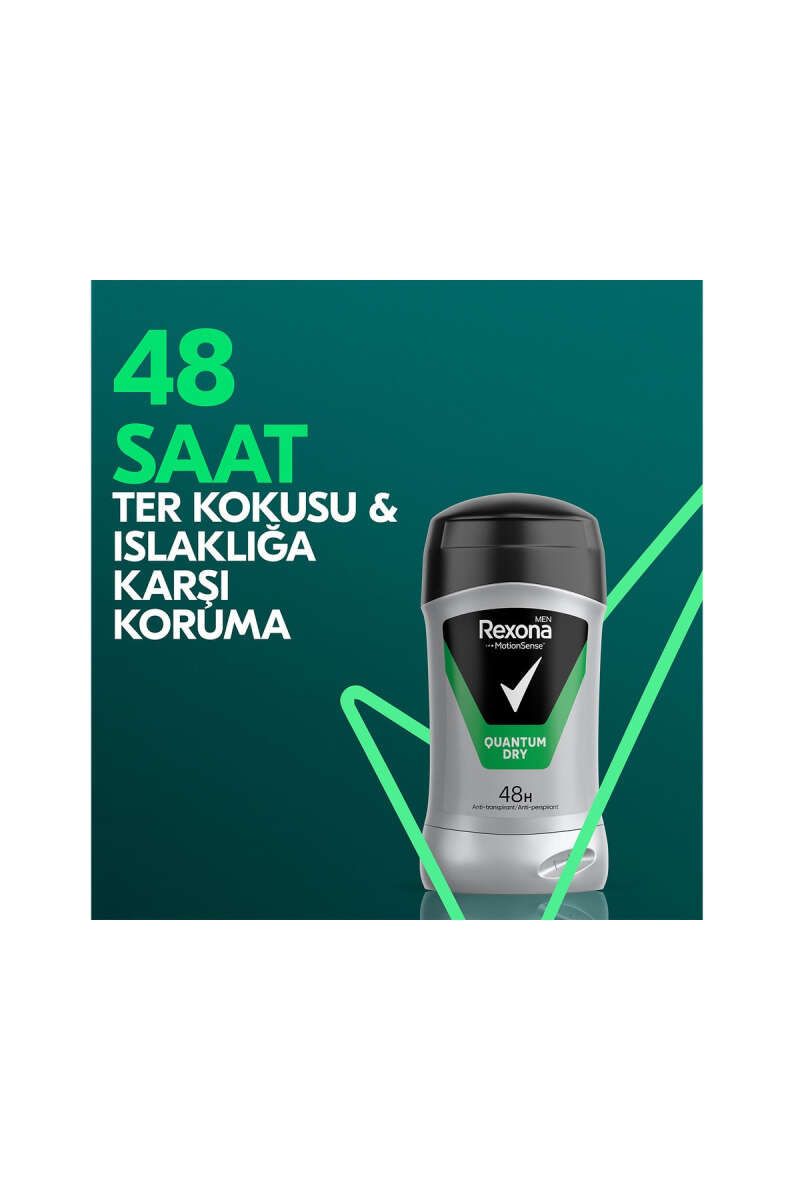 Rexona Men Quantum Dry, yoğun temponuzda sizi yarı yolda bırakmaz. Gelişmiş formülü ve maskülen kokusuyla gün boyu kendinizi güvende ve taze hissetmenizi sağlar.