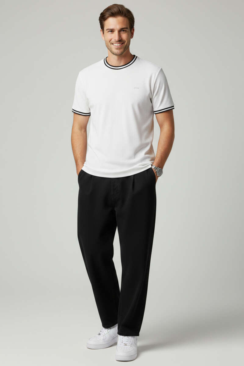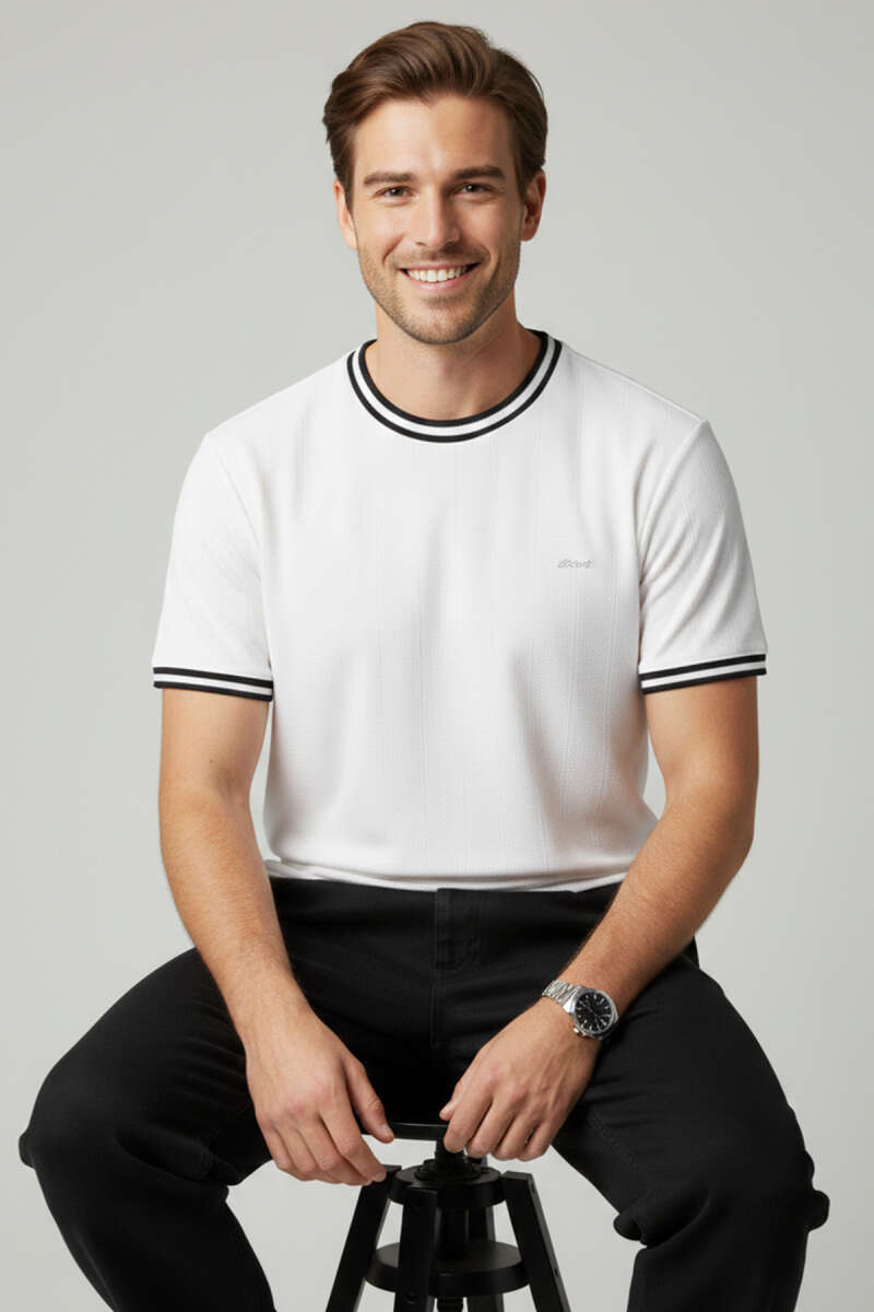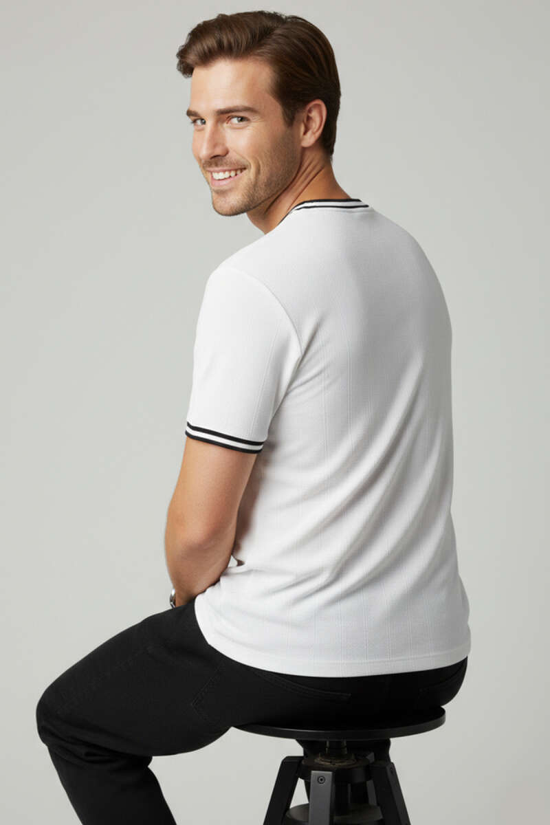 Ribana Detaylı Kısa Kol Erkek T-shirt Beyaz
