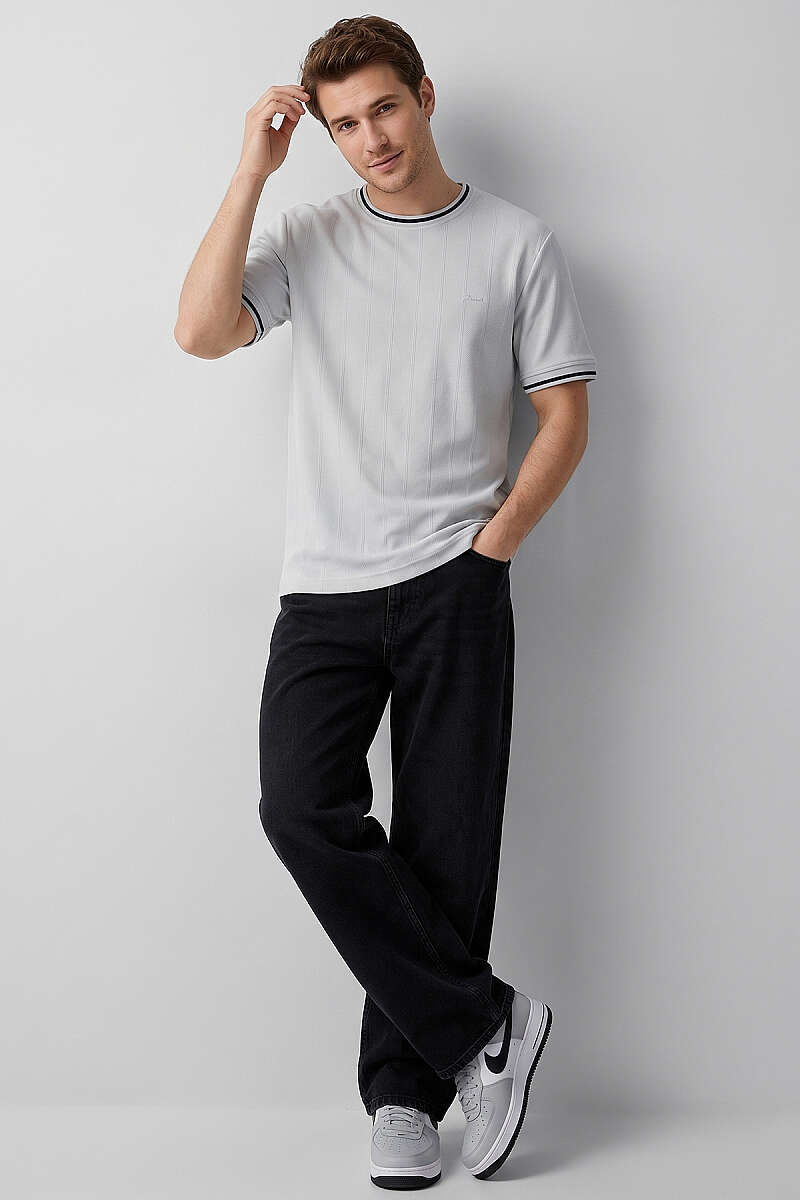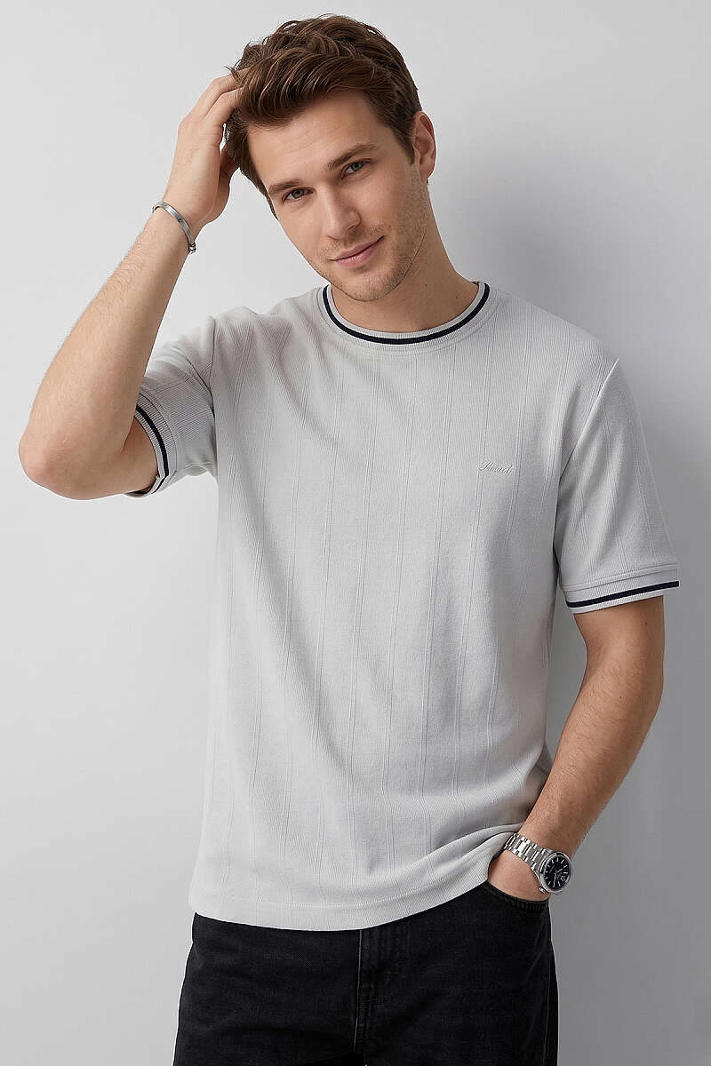 Ribana Detaylı Kısa Kol Erkek T-shirt Gri