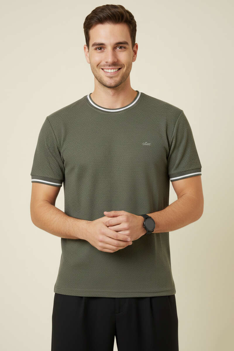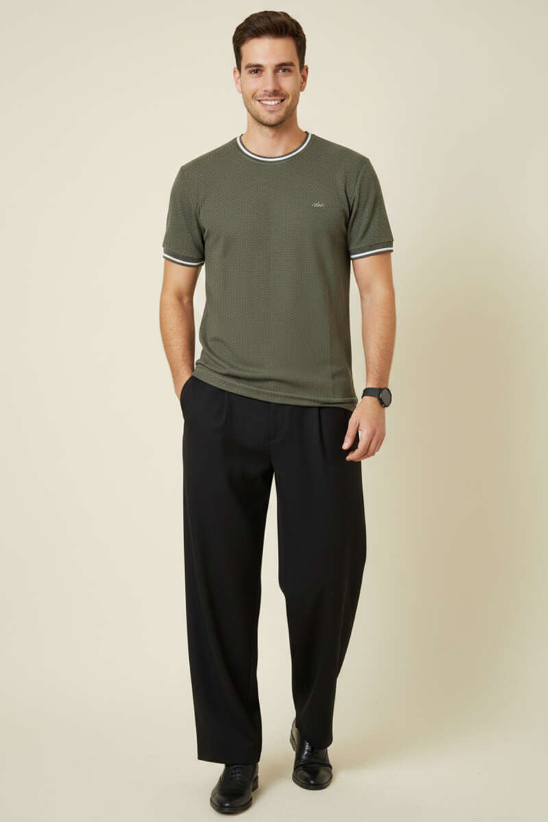 Ribana Detaylı Kısa Kol Erkek T-shirt Haki
