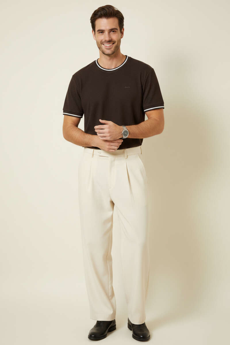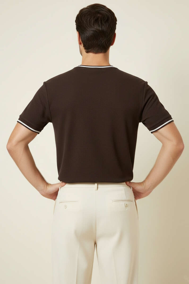 Ribana Detaylı Kısa Kol Erkek T-shirt Kahve