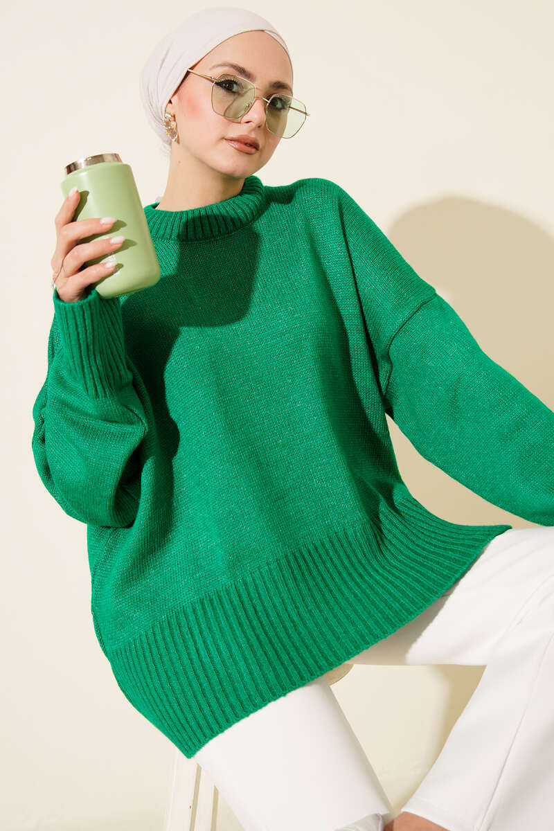 Yatay Çizgili Balon Kol Triko Tunik Taş