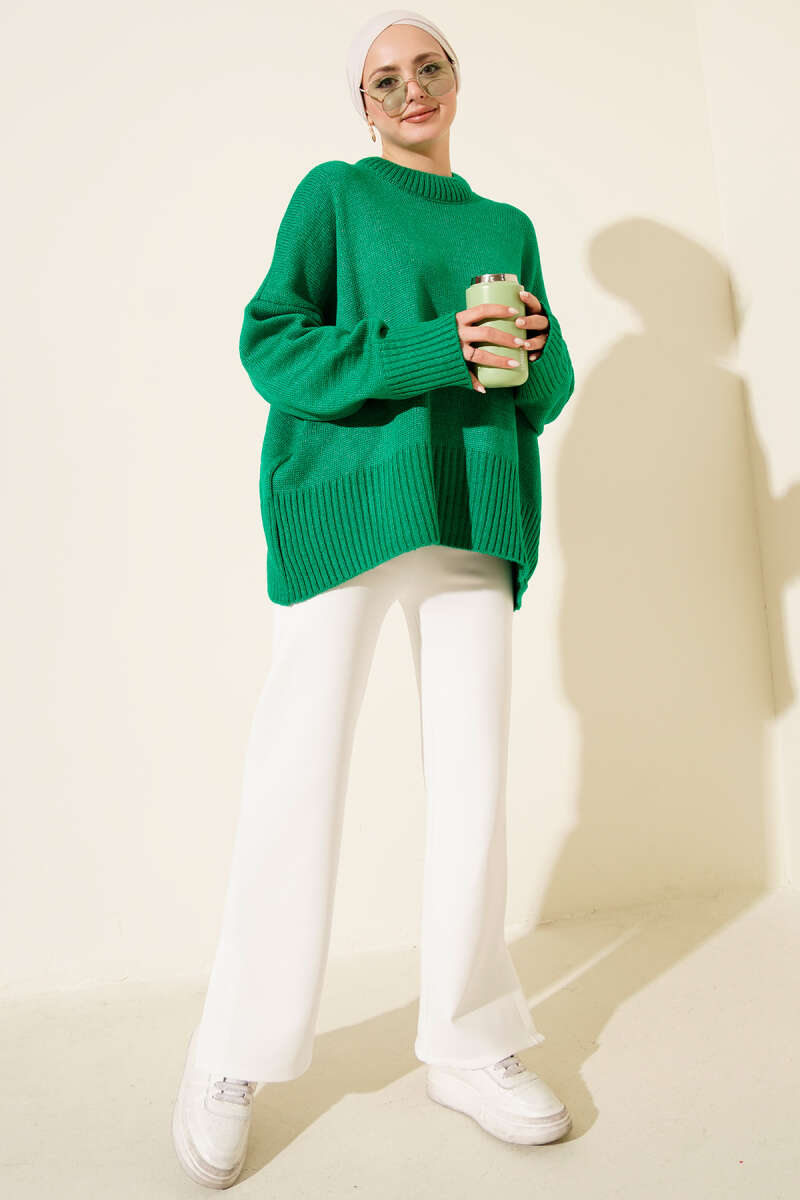 Çoban Dikiş Detaylı Triko Tunik Fuşya