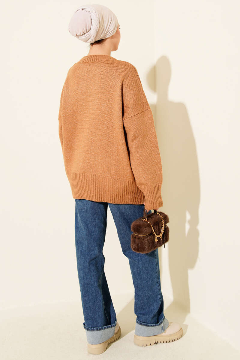 Kanguru Cepli Kapüşonlu Şardonlu Sweatshirt Kahve