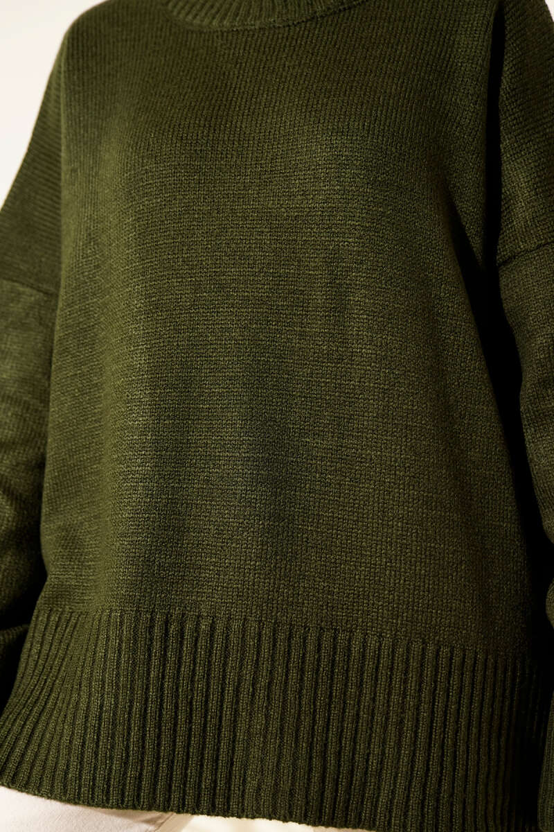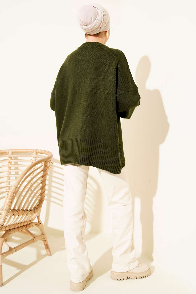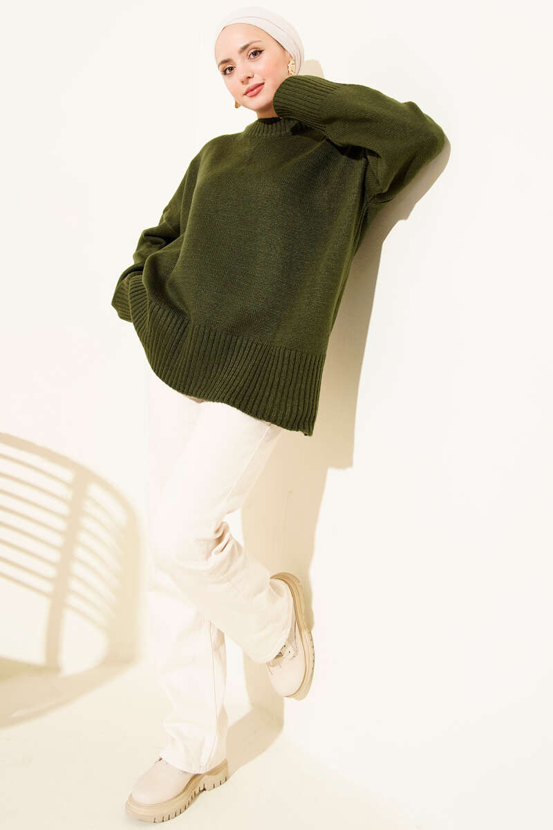 Salaş Bisiklet Yaka Simli Triko Tunik Haki