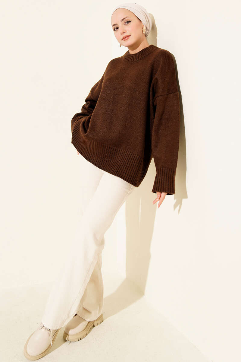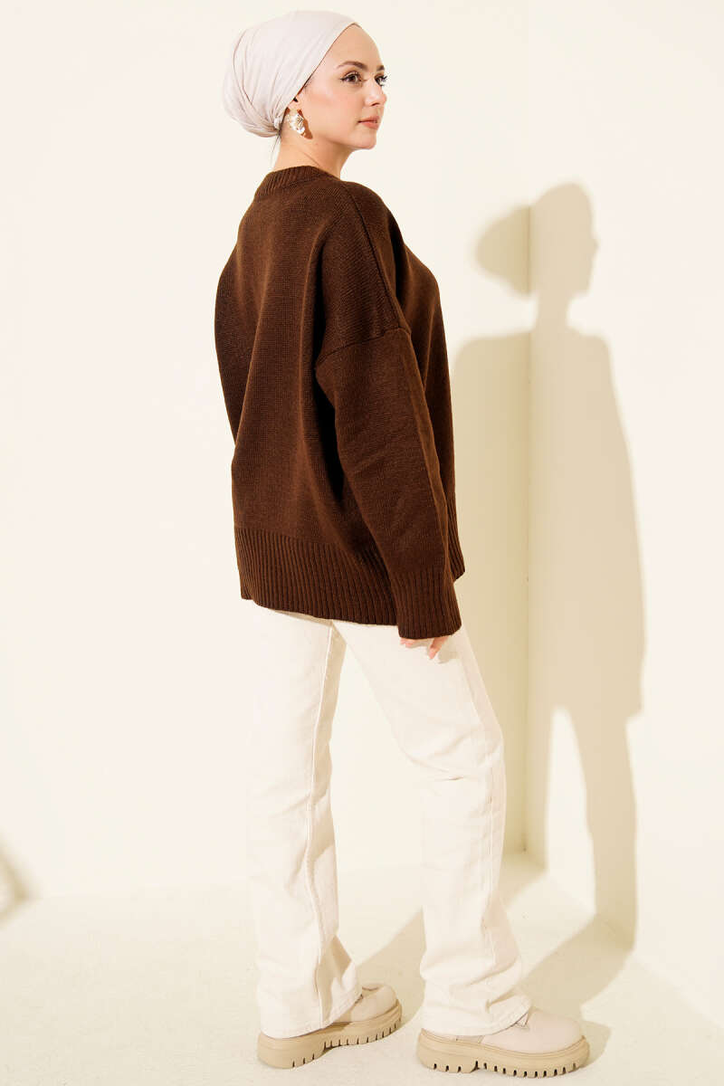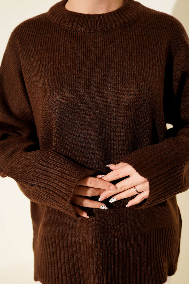 Kanguru Cepli Kapüşonlu Şardonlu Sweatshirt Kahve