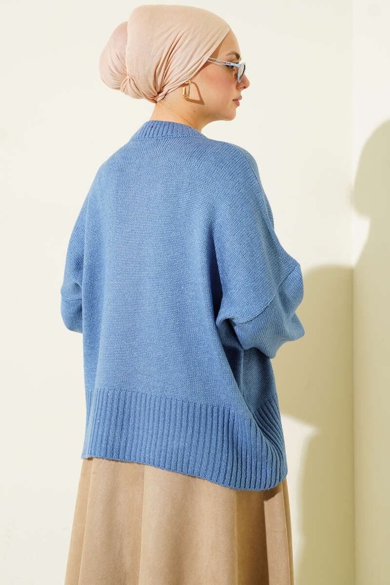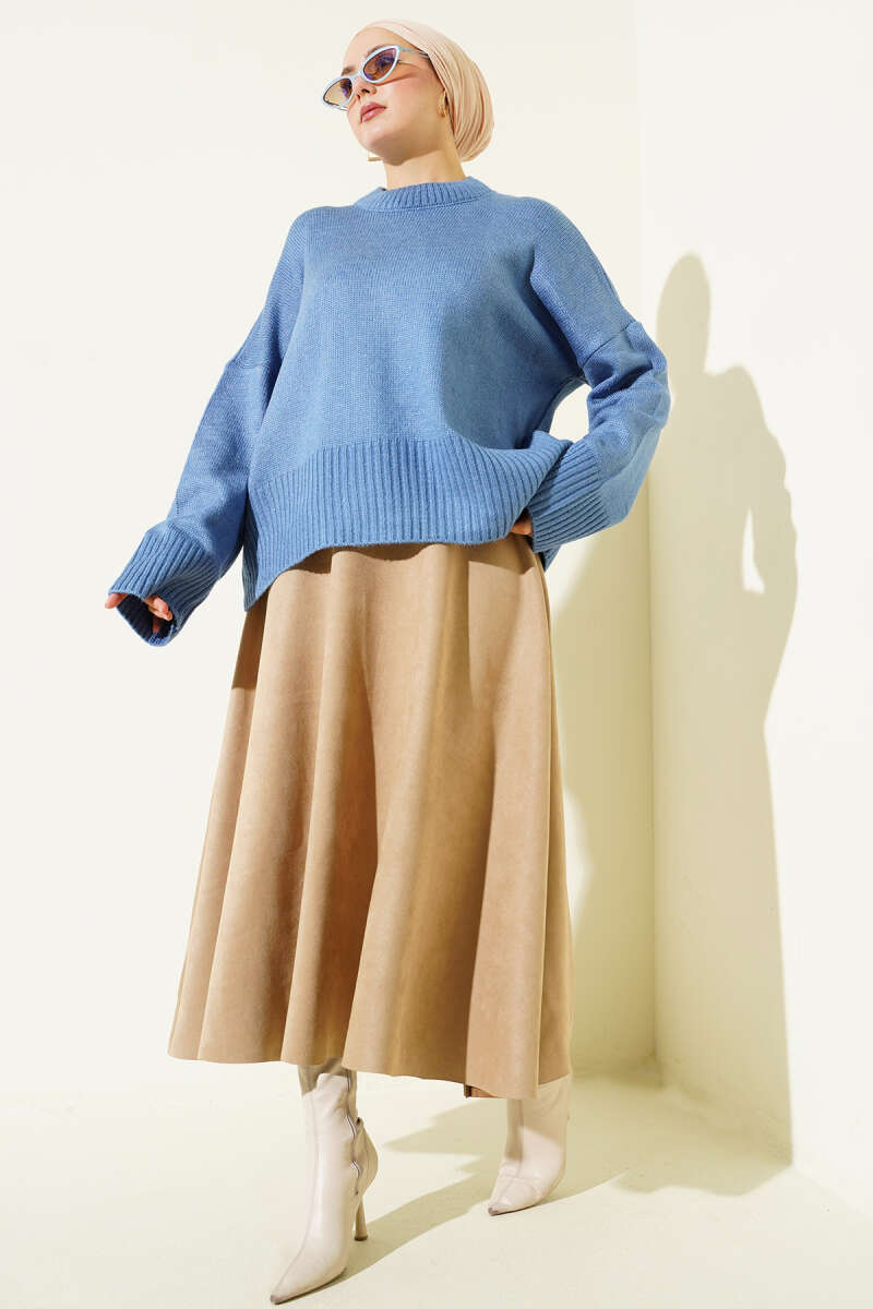 Yanı Yırtmaçlı Oversize Triko Tunik Saks