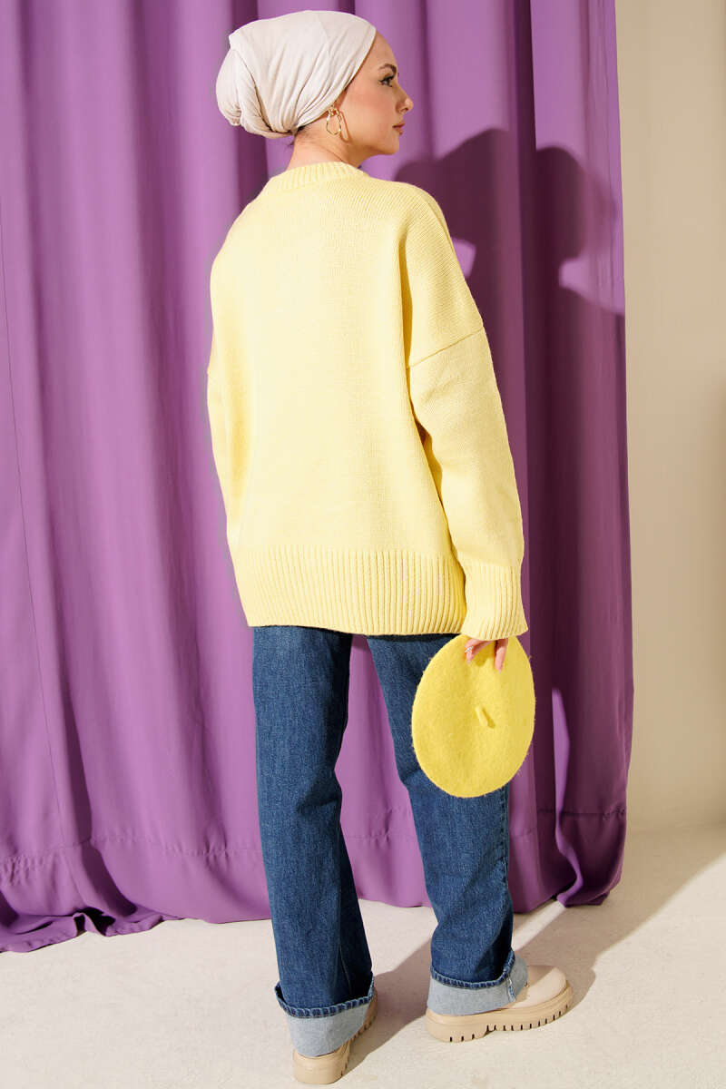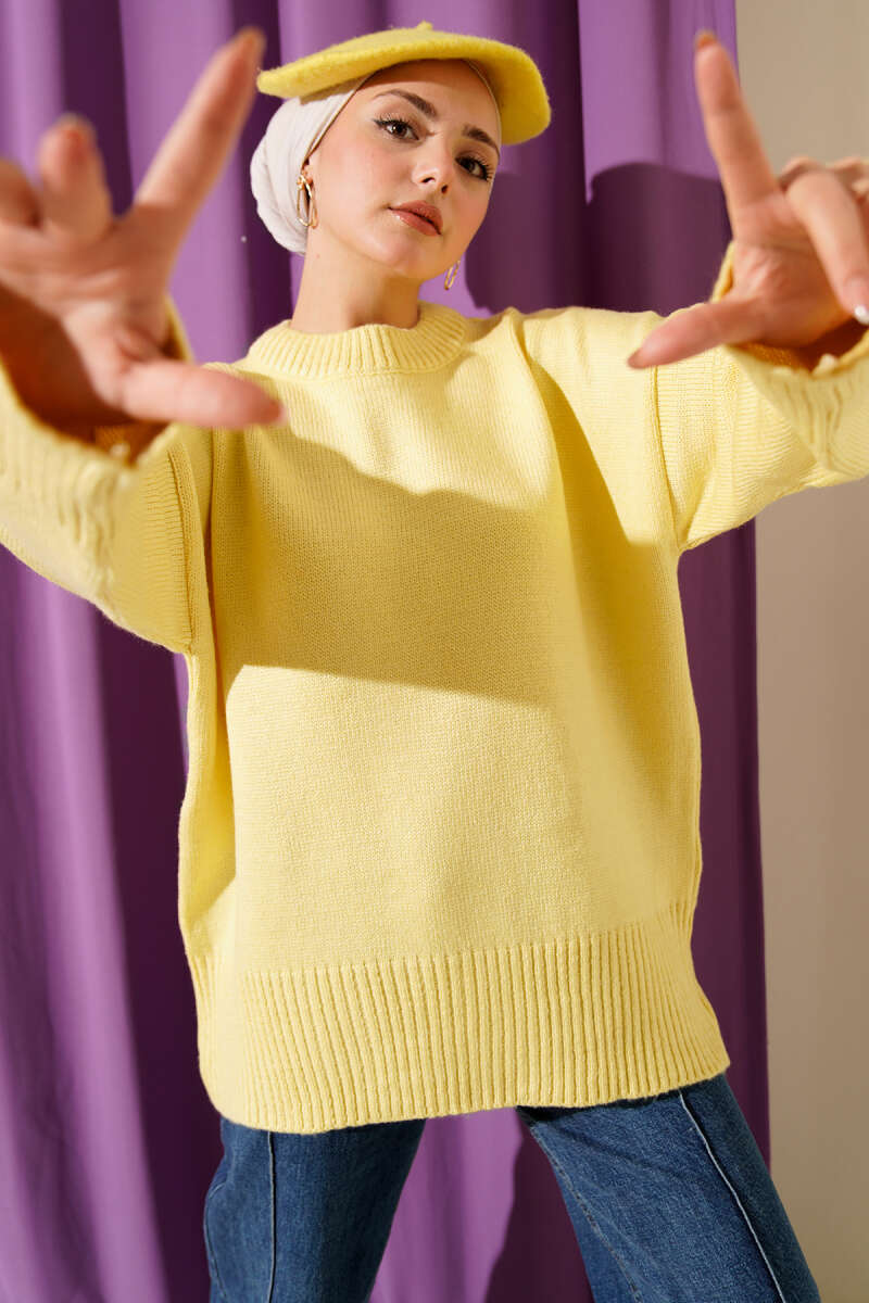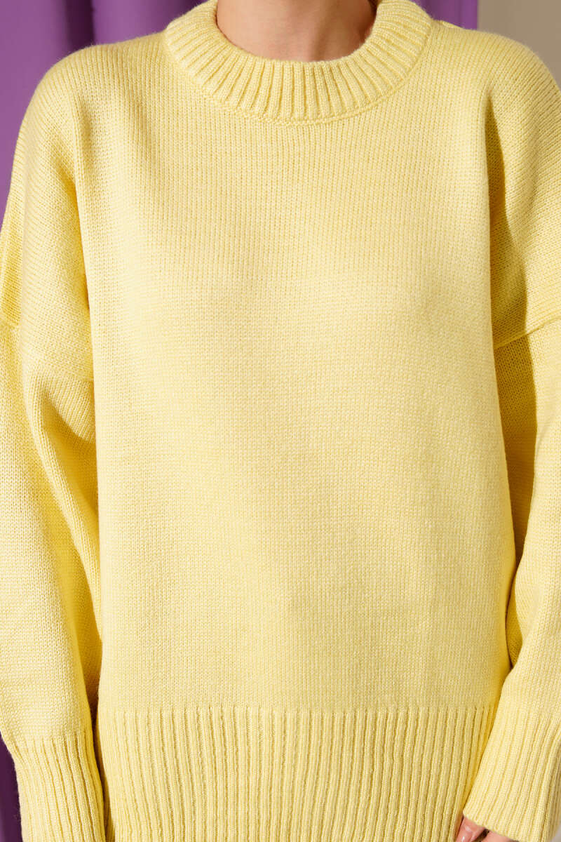 Düşük Omuz Salaş Triko Tunik Sarı