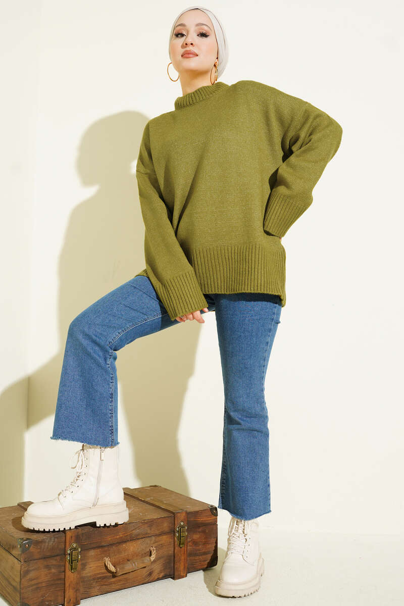Basic Oversize Triko Tunik Haki