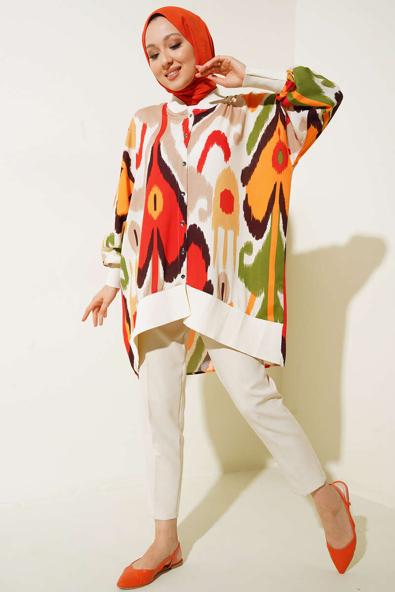Yeni sezon gömleğimiz farklı renkli yapısıyla dikkat çekmektedir. Gömleğimizin önü düğmelidir. Bu yazın favorisi olan gömleğimiz oldukça rahattır. Renk seçenekleri bulunmaktadır.