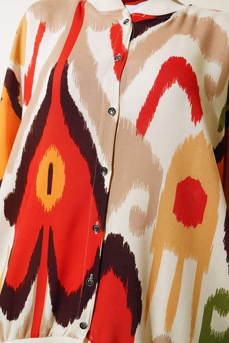 Ribanalı Otantik Desen Düğmeli Tunik Camel