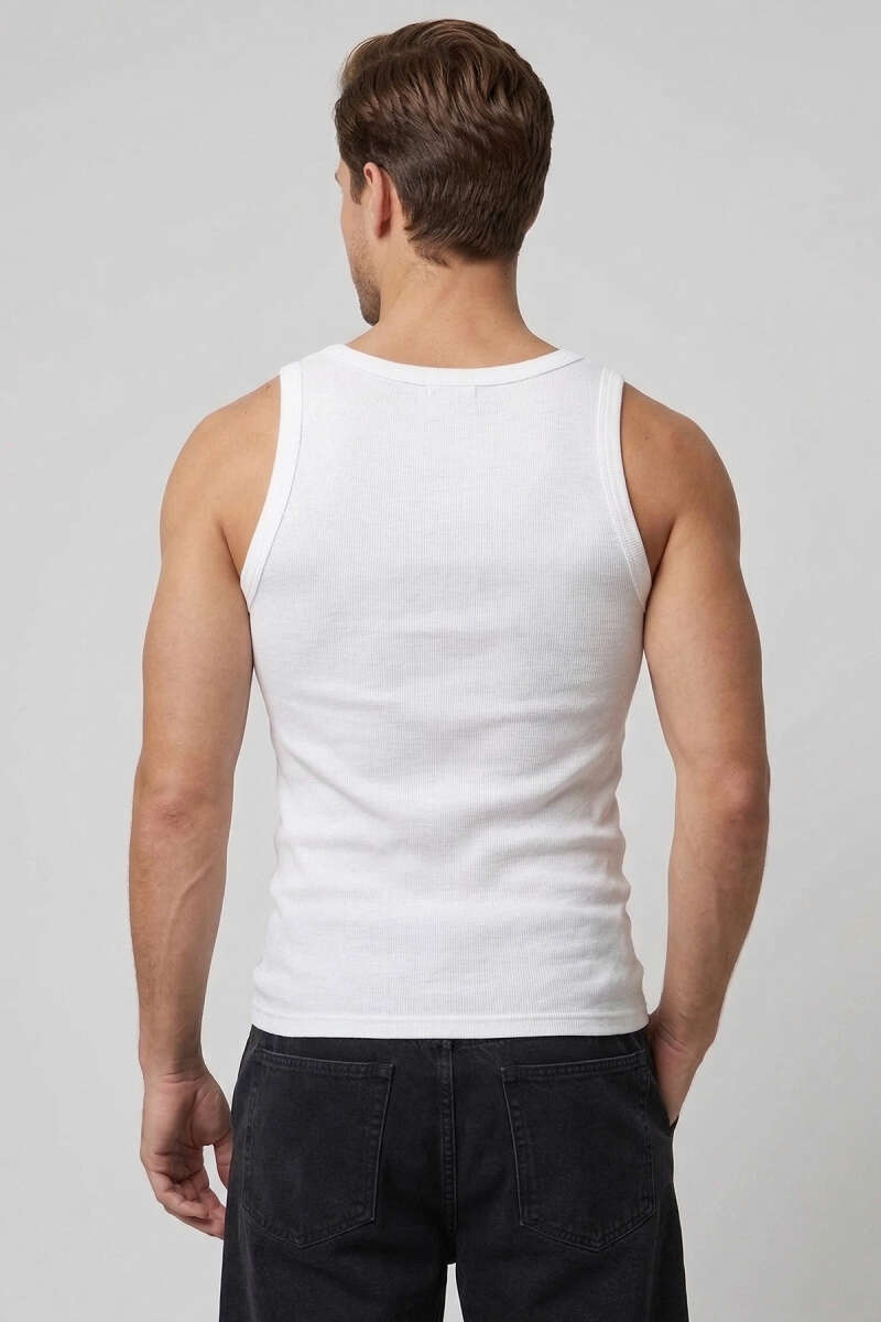 Ribanalı Sıfır Kol Erkek Sporcu Atlet Ekru