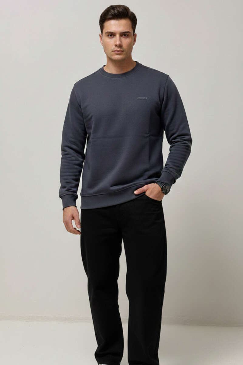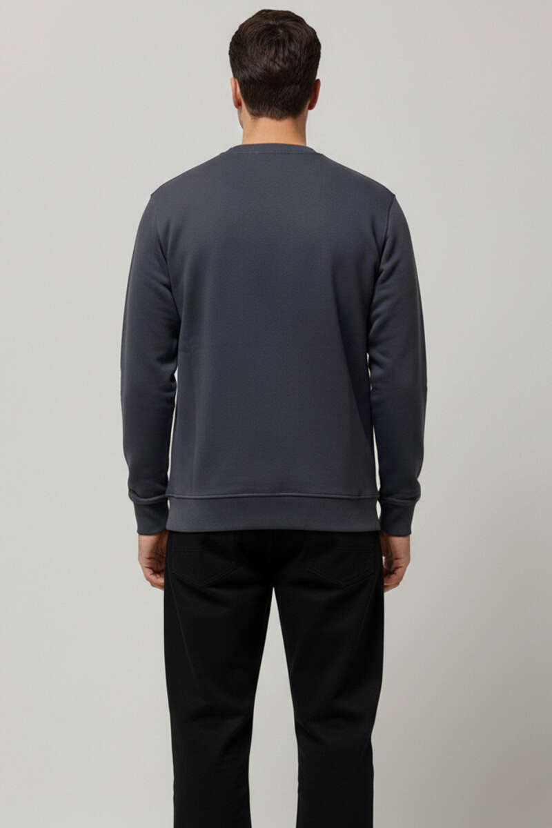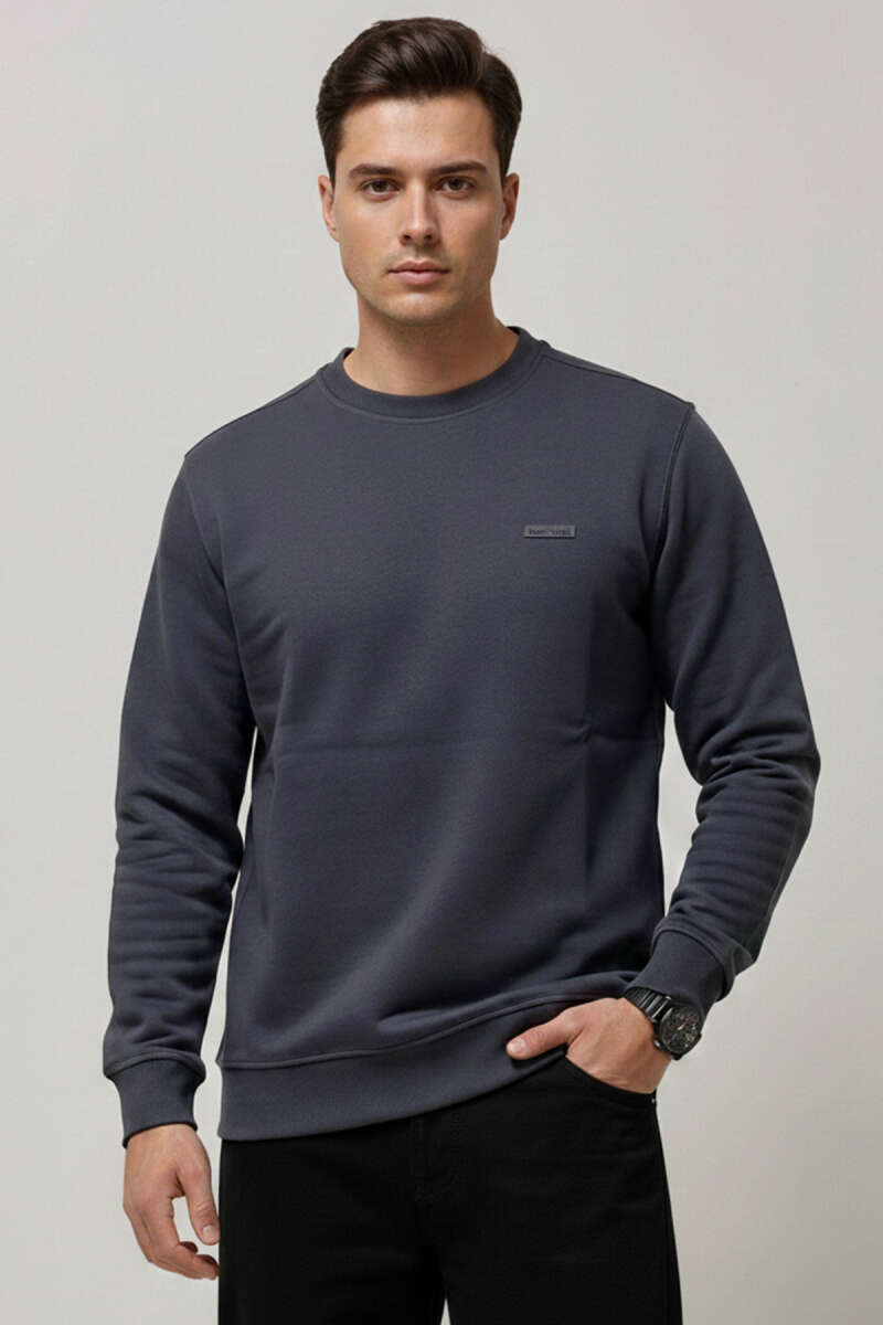 Ribanalı Yaka Yazılı Erkek Sweatshirt Füme