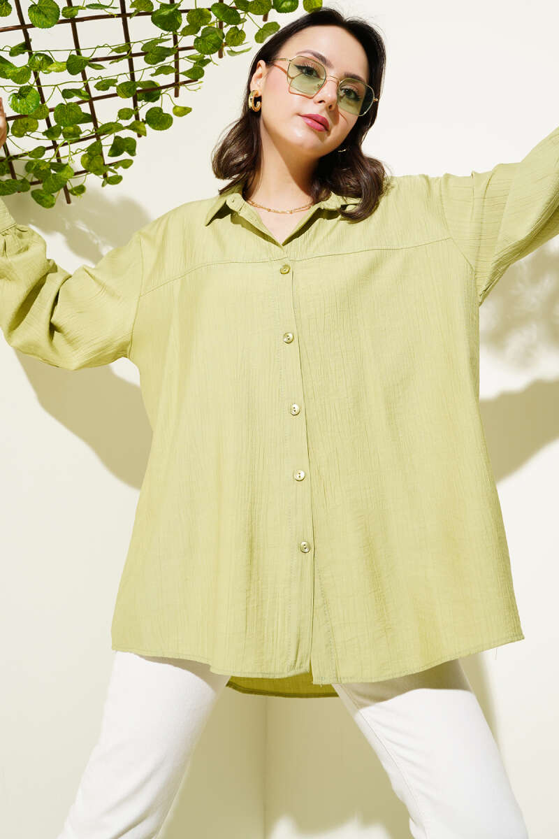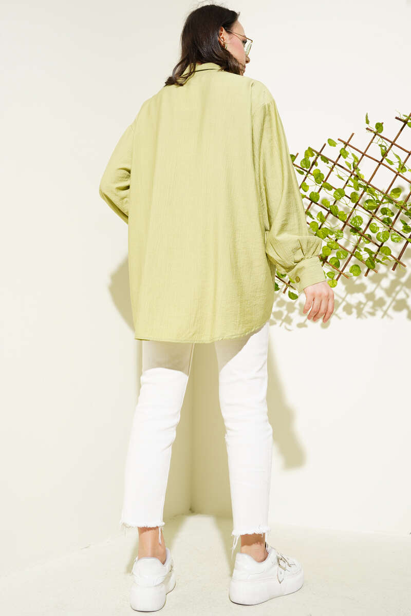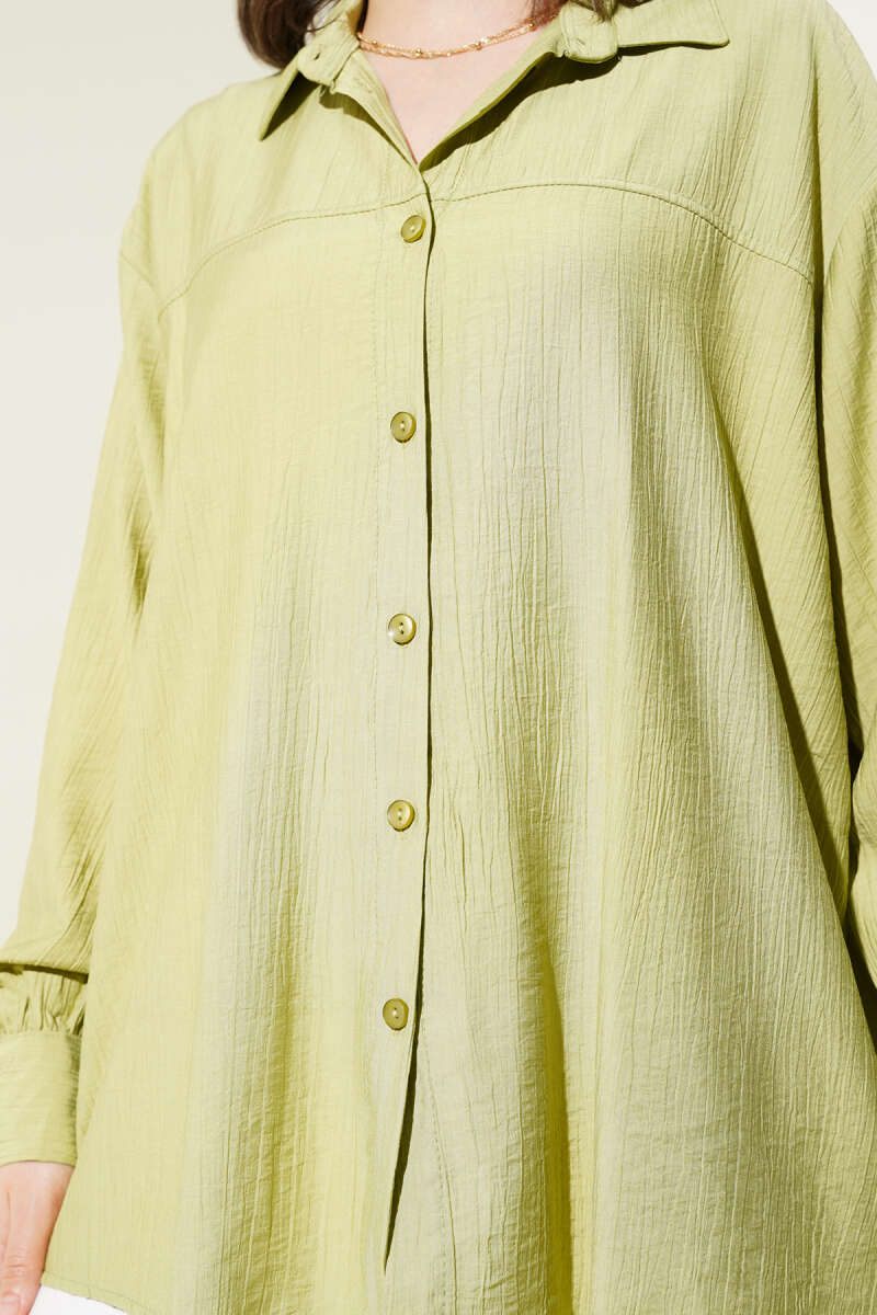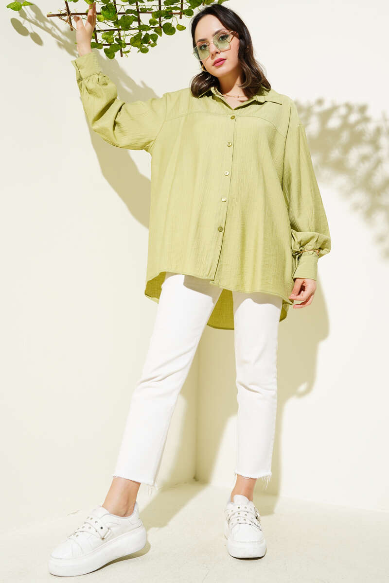 Yaka Bağlamalı Saten Gömlek Yeşil