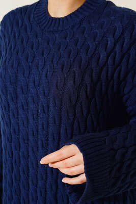 Saç Örgü Desenli Uzun Elbise Lacivert