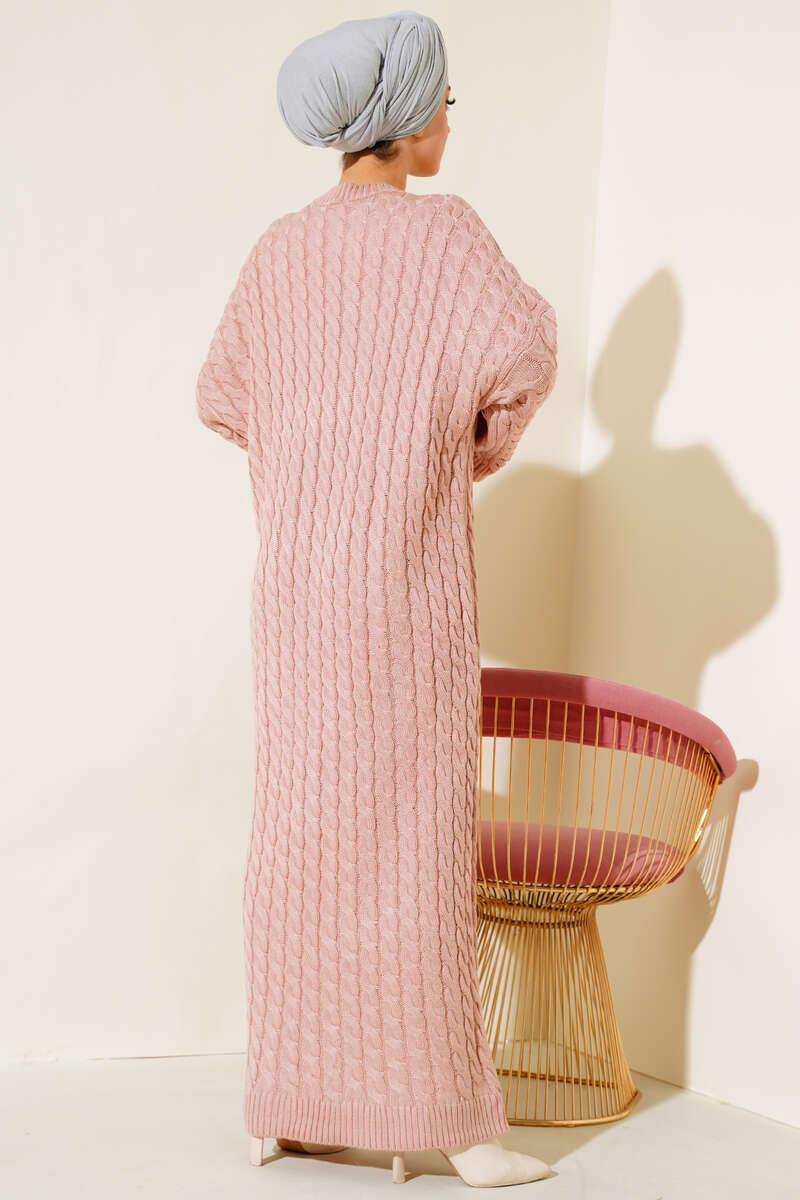 Saç Örgü Desenli Uzun Elbise Pers Gülü