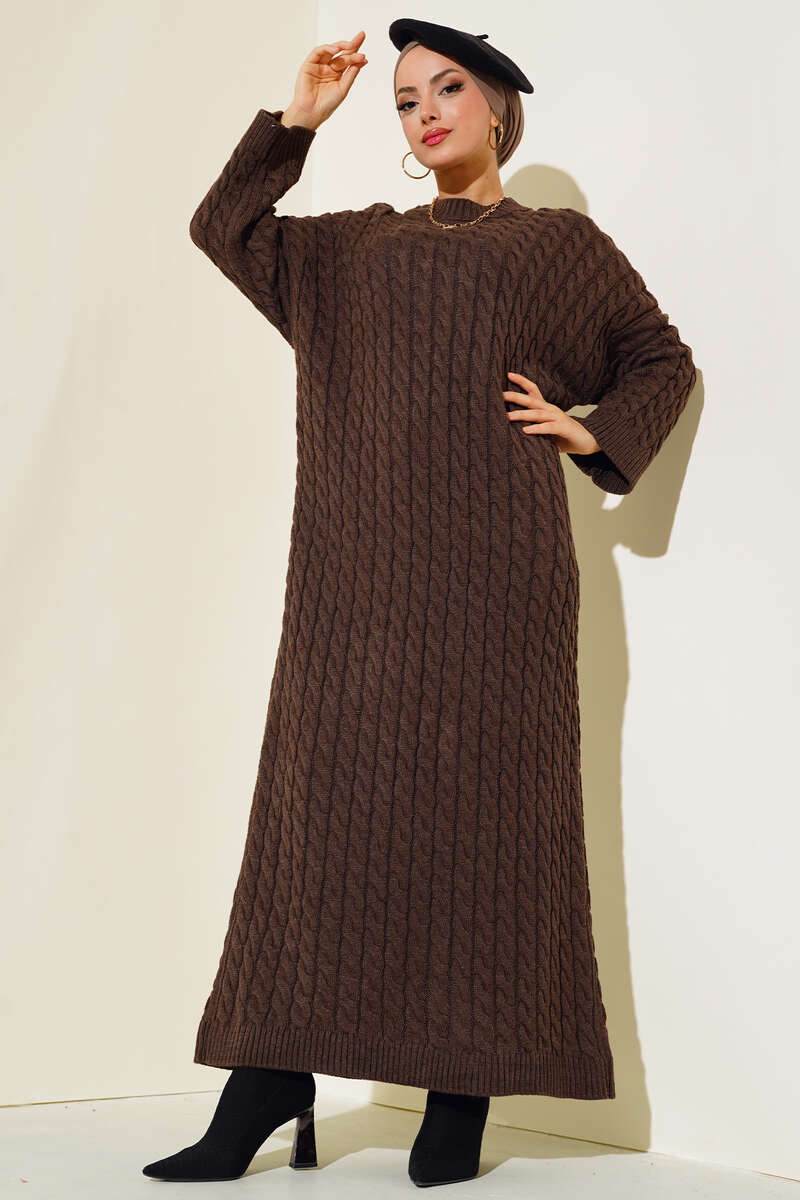 Yeni sezon triko elbisemiz sizlerle beraber. Örgü desenli elbisemiz salaş modeldir. Omuzları düşüktür. Şık örgü elbise modelimizin renk seçenekleri mevcuttur.