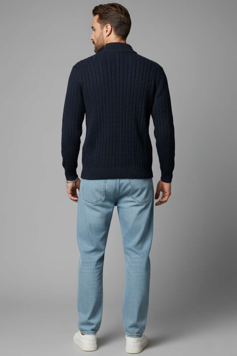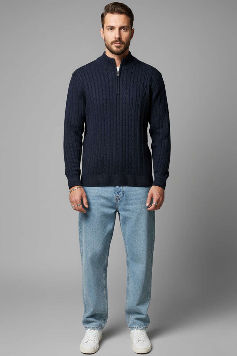 Yarım Fermuarlı Örgü Erkek Triko Kazak Siyah