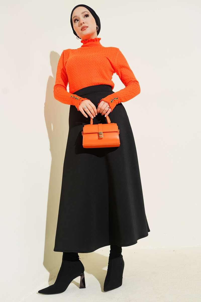 Yan Yırtmaçlı Yumoş Triko Kazak Sarı