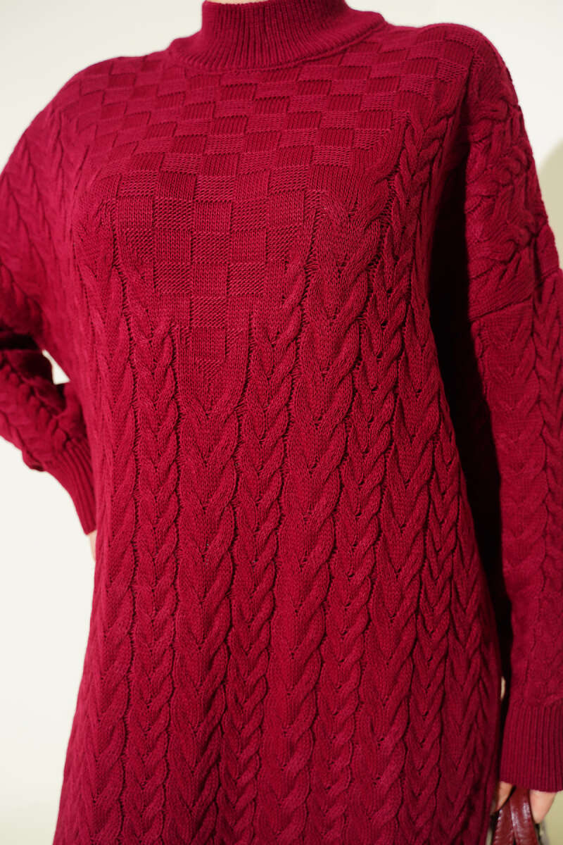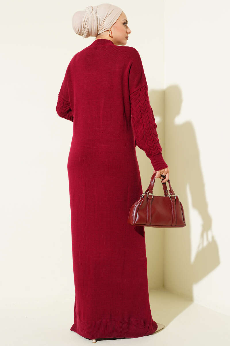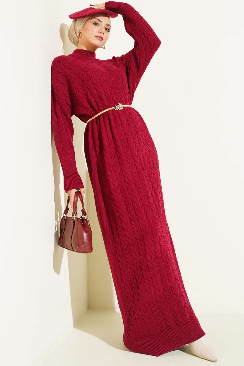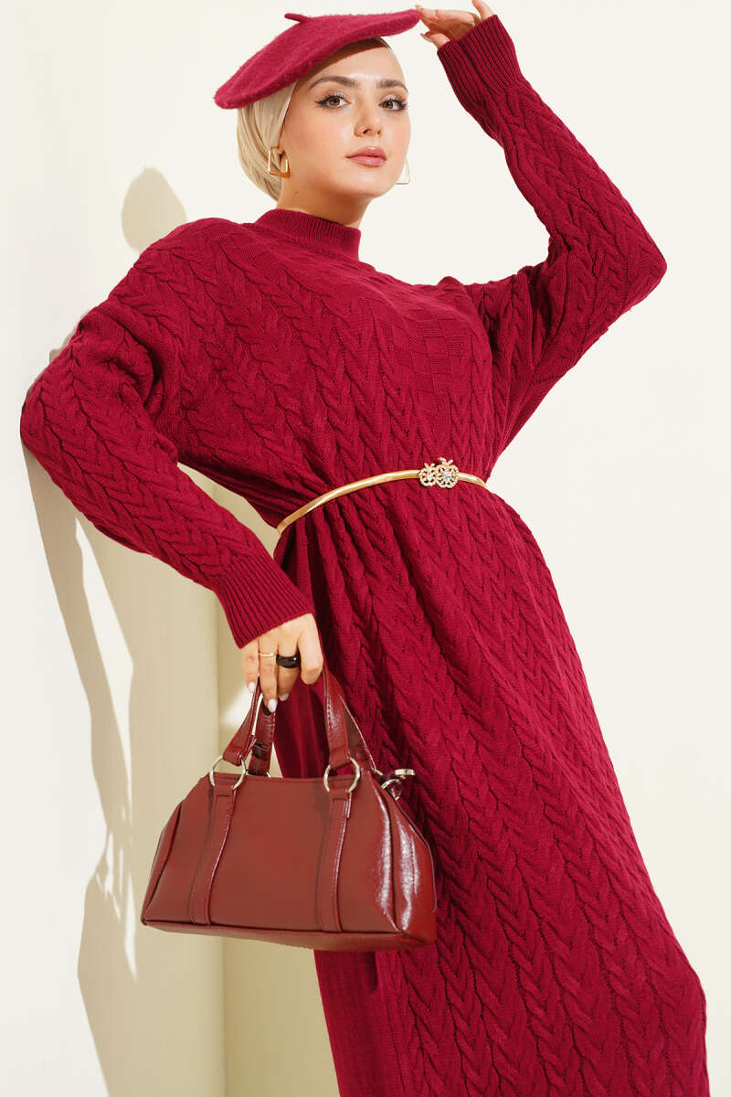 Saç Örgü Kabartmalı Triko Elbise Taş