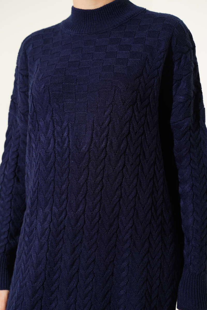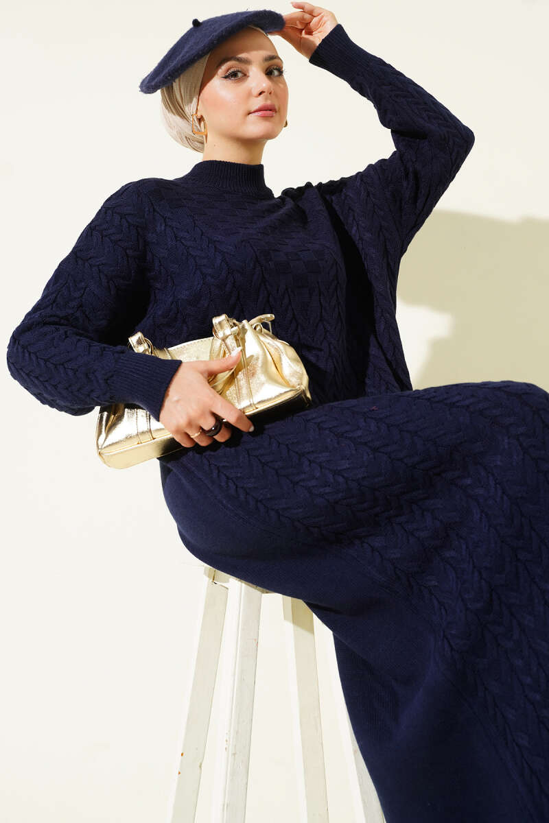 Saç Örgü Kabartmalı Triko Elbise Taş