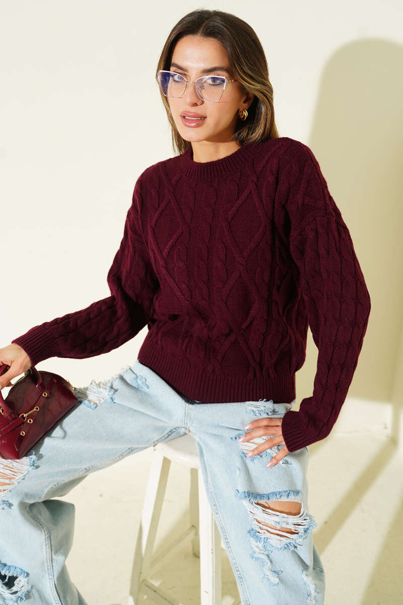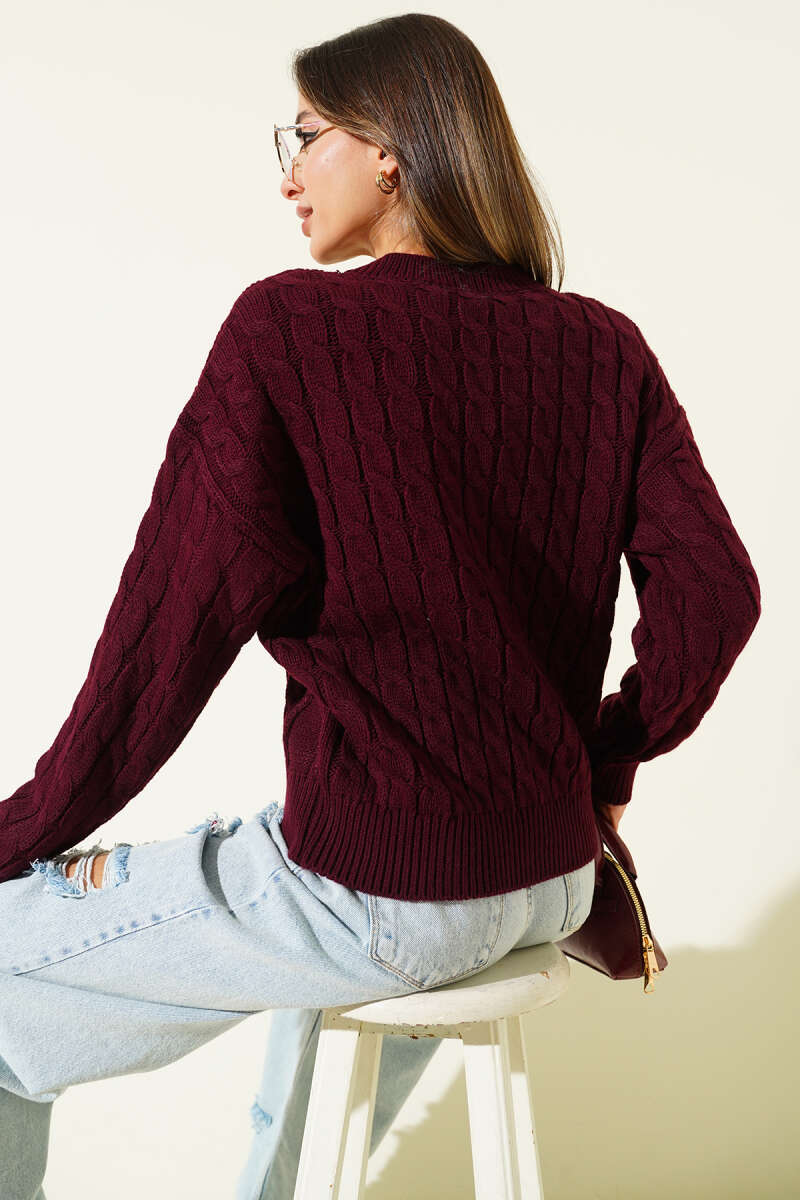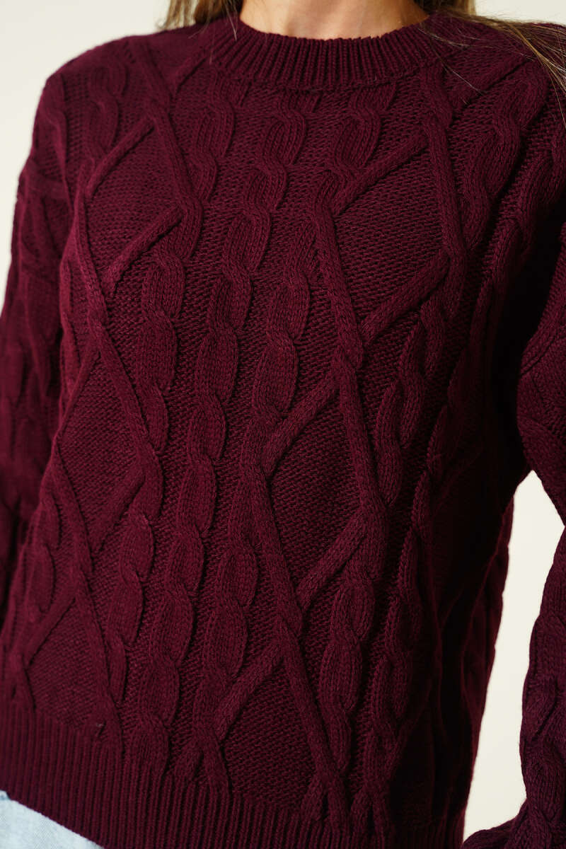 Saç Örgü Kabartmalı Triko Kazak Siyah