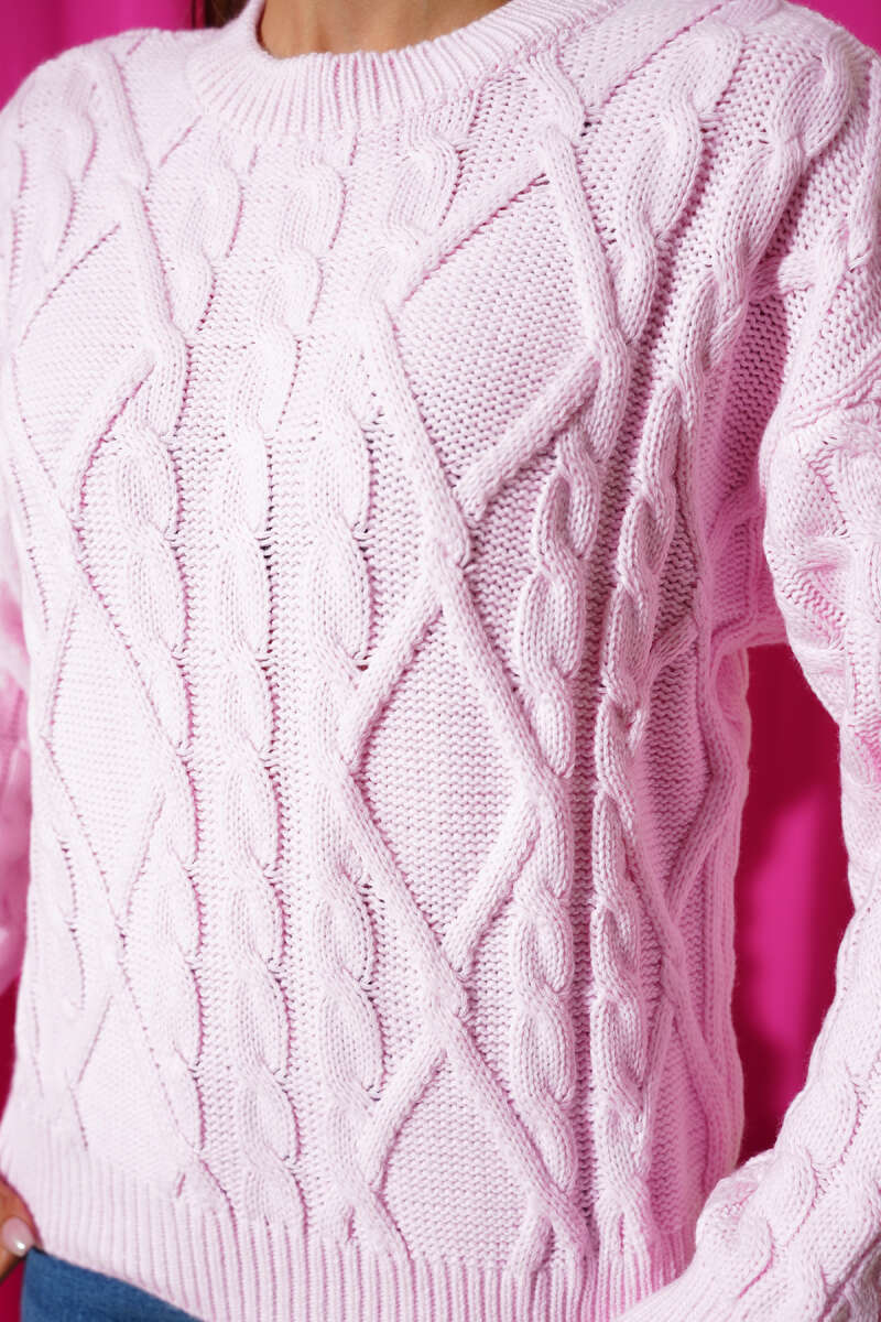 Saç Örgü Kabartmalı Triko Kazak Bordo