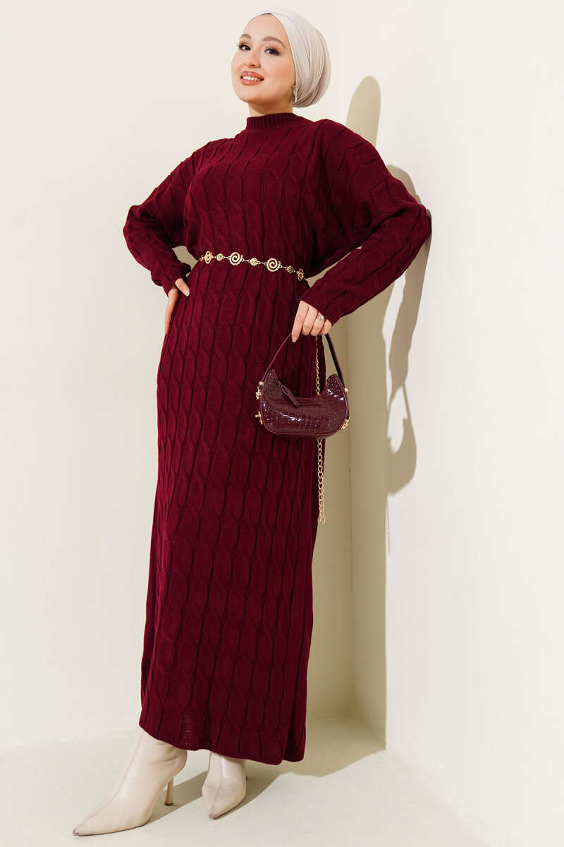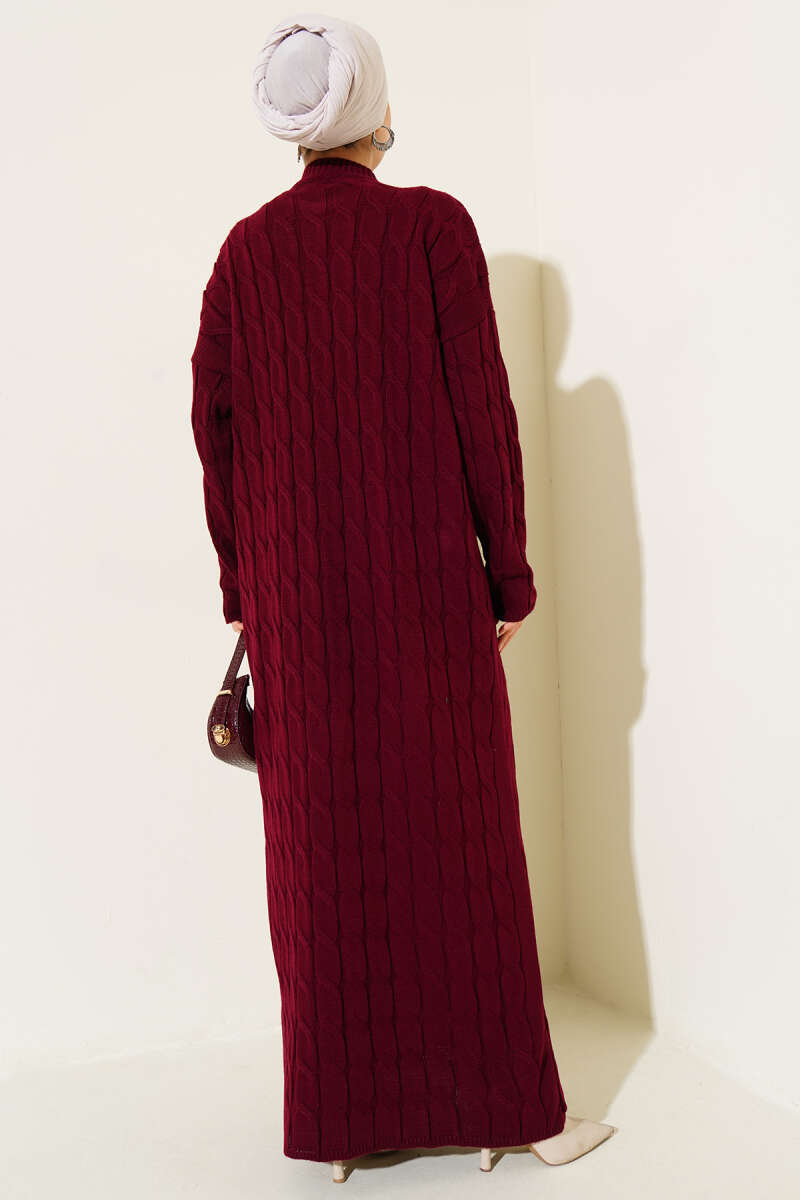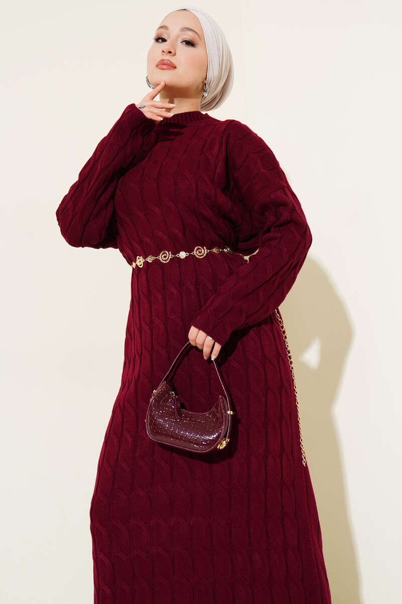 Saç Örgü Şeritli Triko Elbise Yağ Yeşili