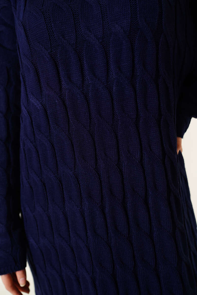 Şerit Ajur Desen Triko Elbise Bebe Mavi