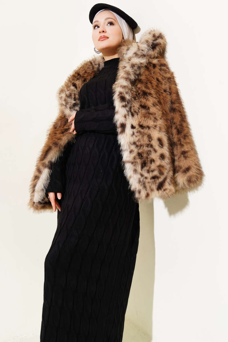 Kapüşonu Kürklü Triko Kazak Lacivert
