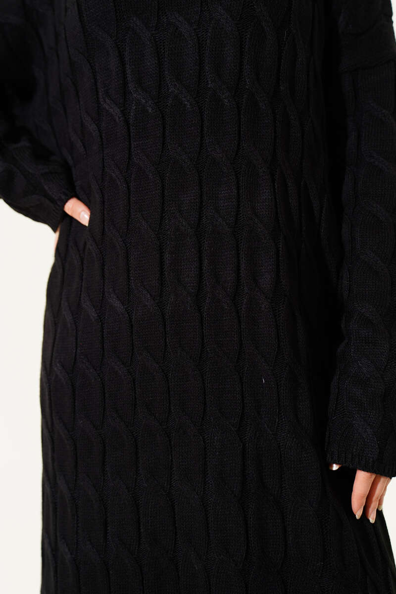 Saç Örgü Şeritli Triko Elbise Yağ Yeşili