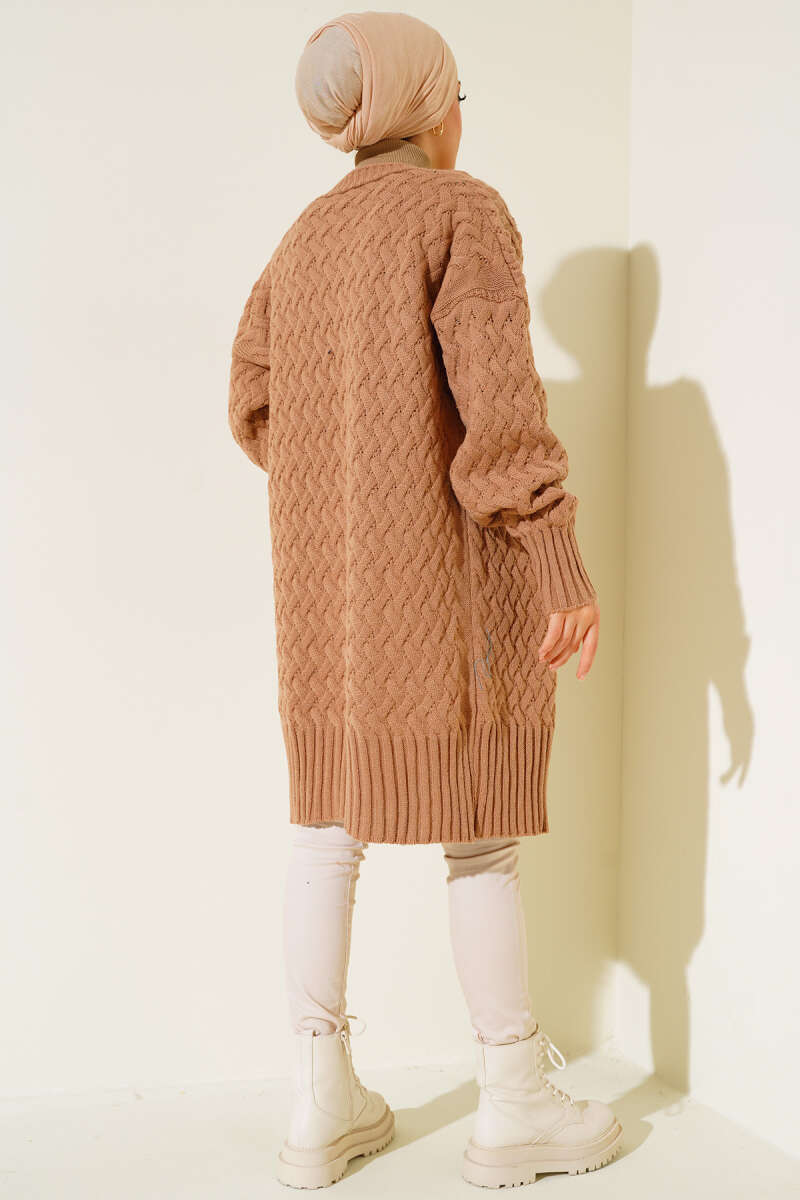 Atkılı Düğmeli Cepli Triko Hırka Kahve