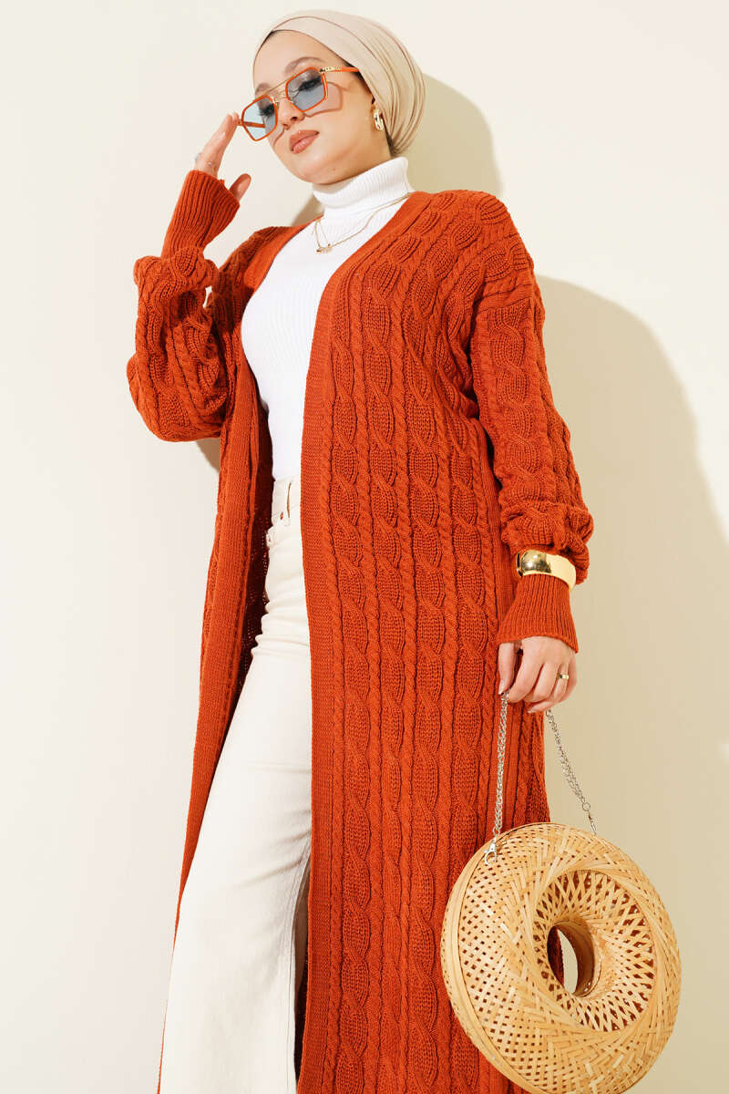 Ajurlu Top Düğmeli Triko Hırka Sarı