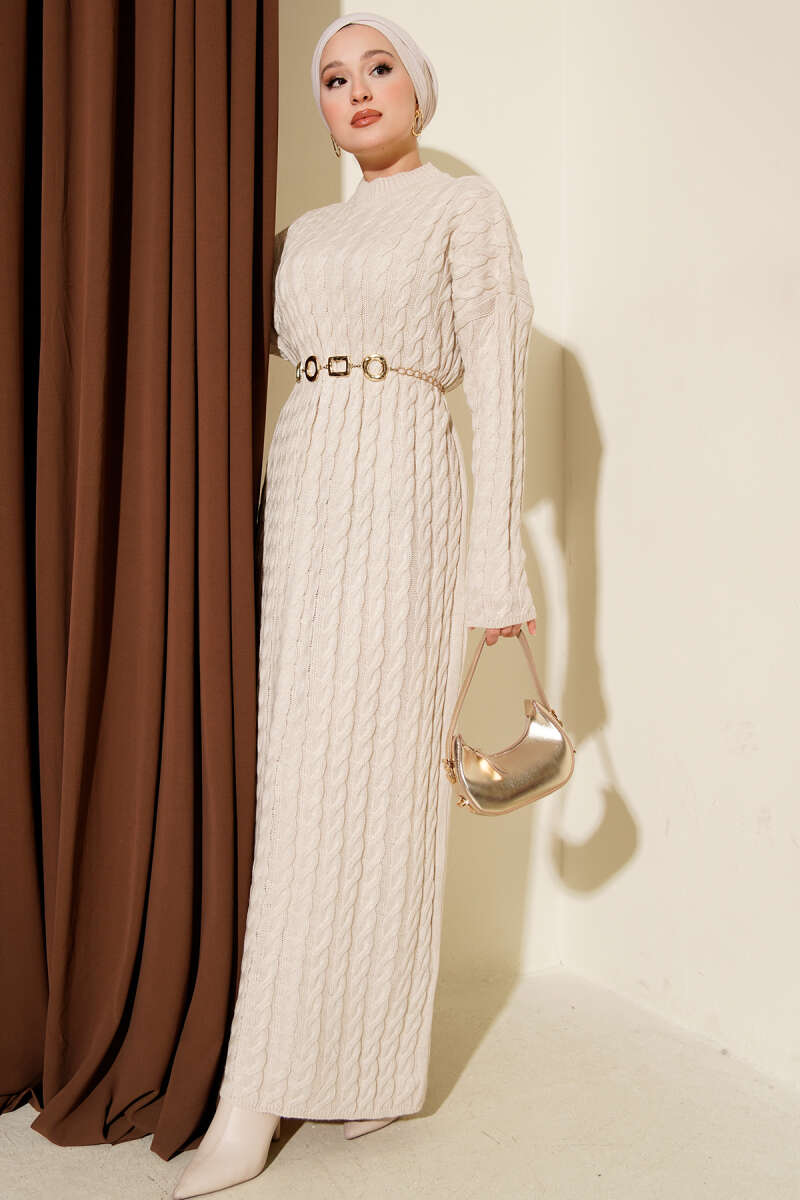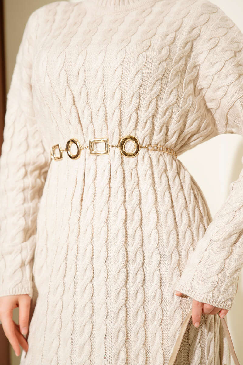 Fitilli Basic Triko Elbise Taş