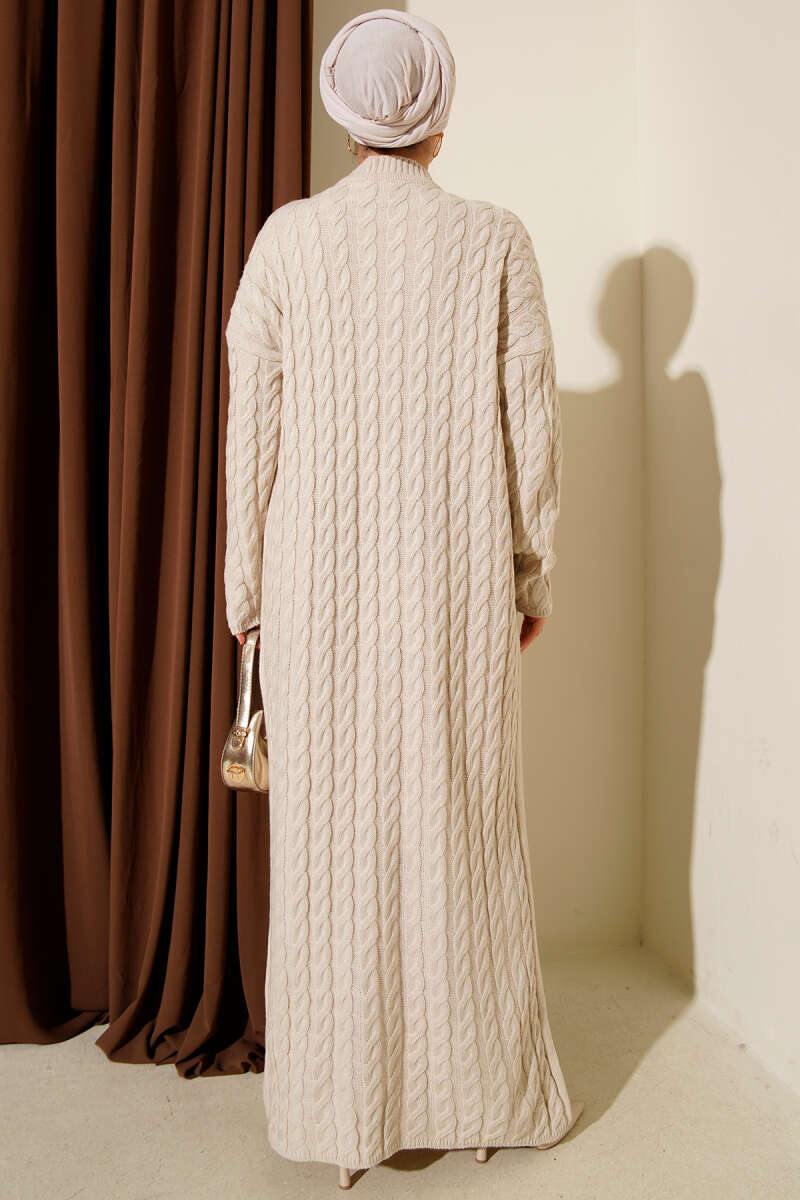 Saç Örgülü Basic Triko Elbise Kahve