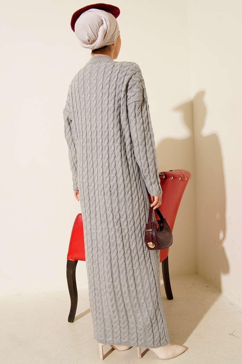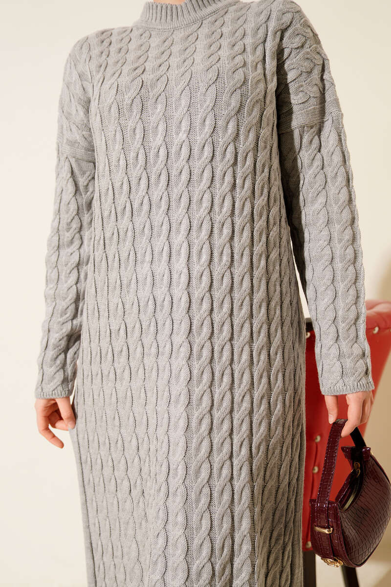 Saç Örgülü Basic Triko Elbise Yağ Yeşili