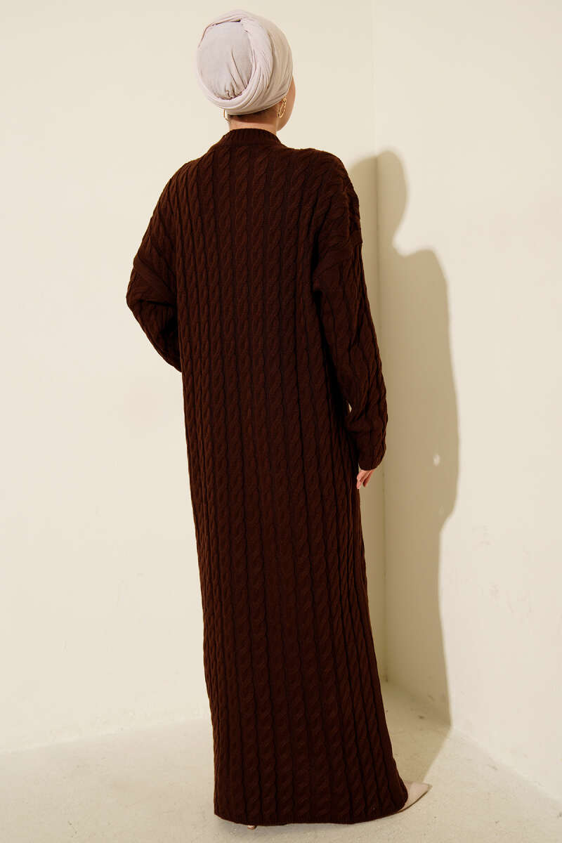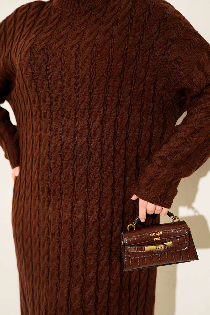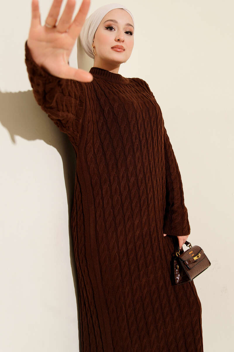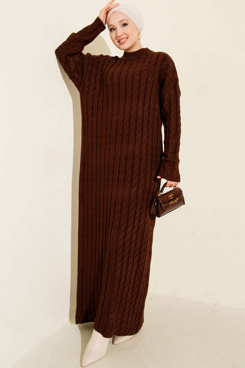 Saç Örgülü Basic Triko Elbise Yağ Yeşili