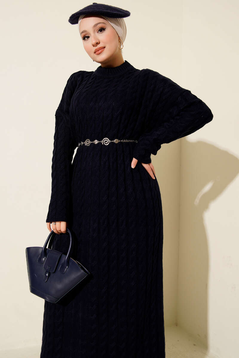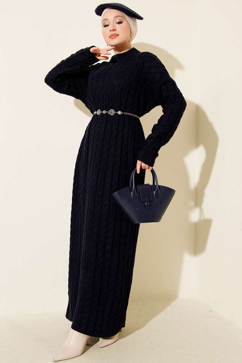 Saç Örgülü Basic Triko Elbise Yağ Yeşili