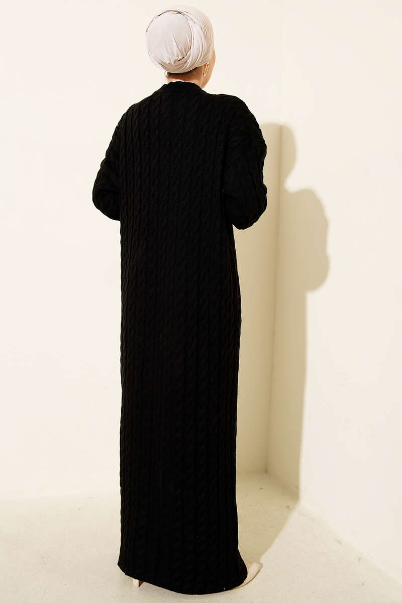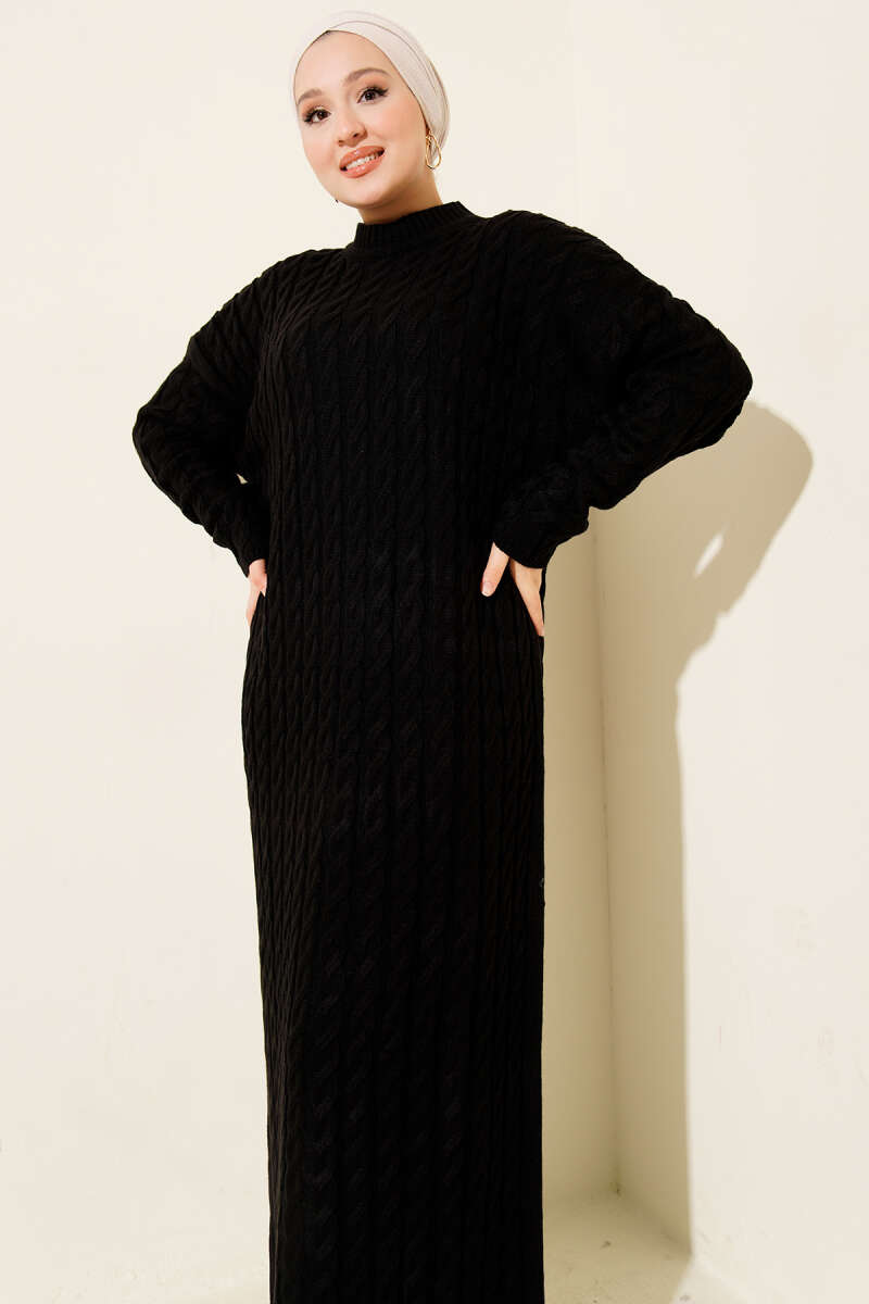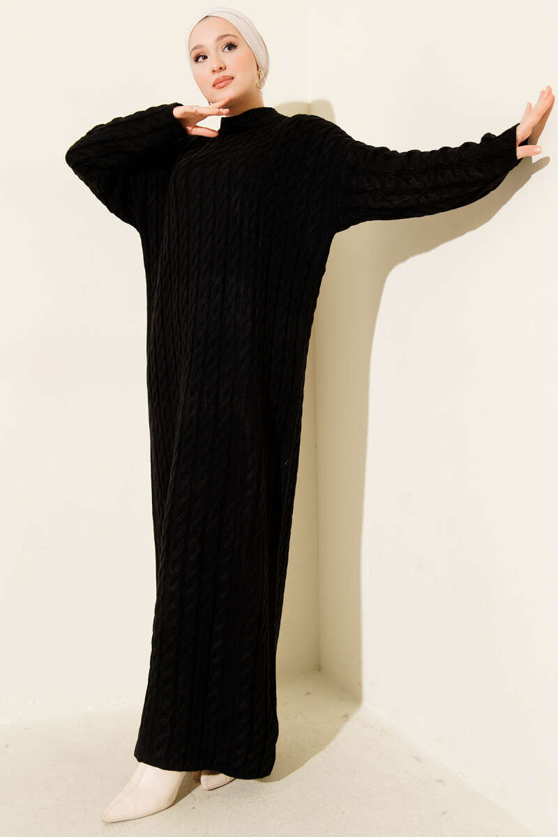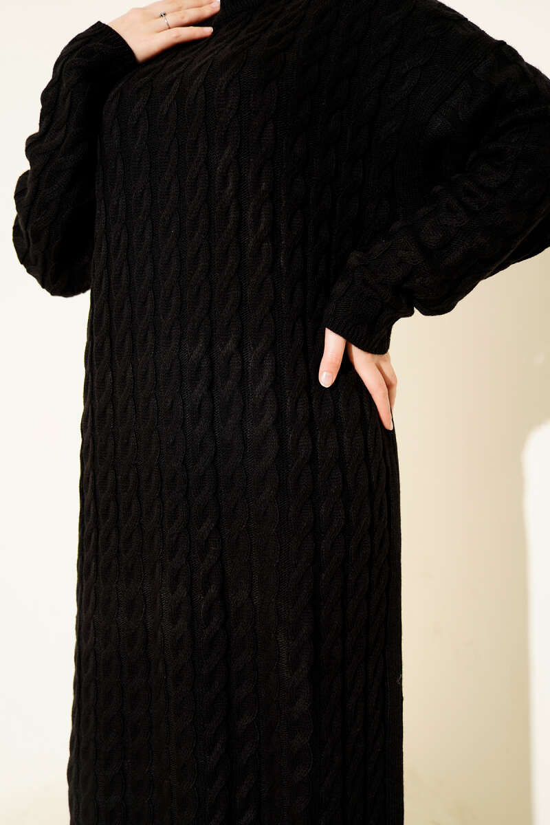Saç Örgülü Basic Triko Elbise Yağ Yeşili