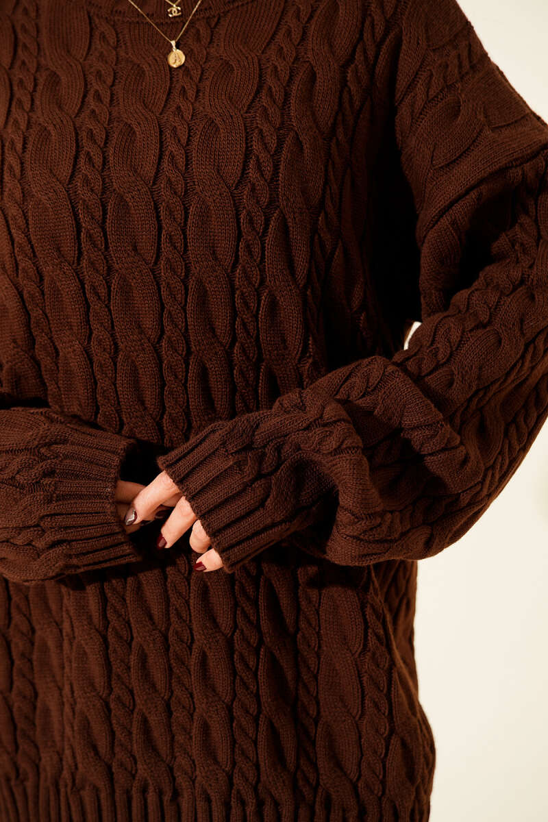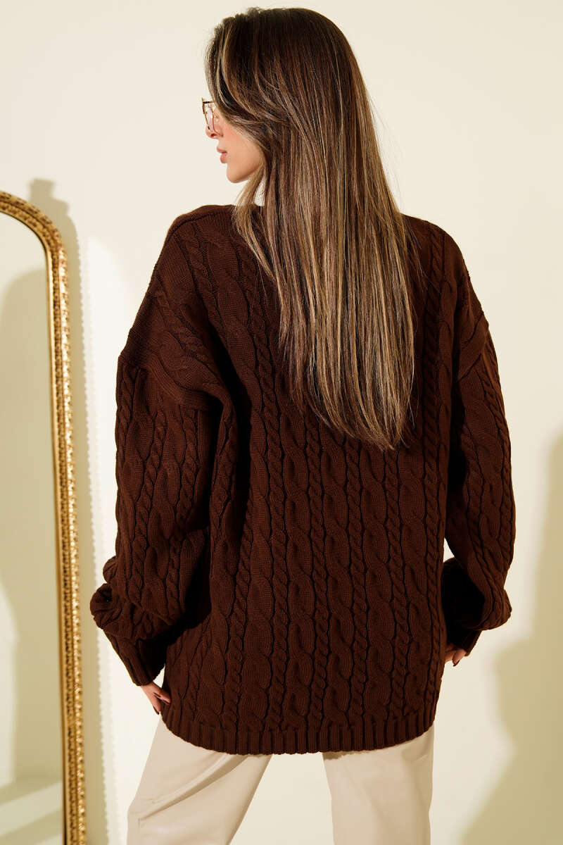 Balıkçı Yaka Fitilli Parmak Geçirmeli Crop Kahve