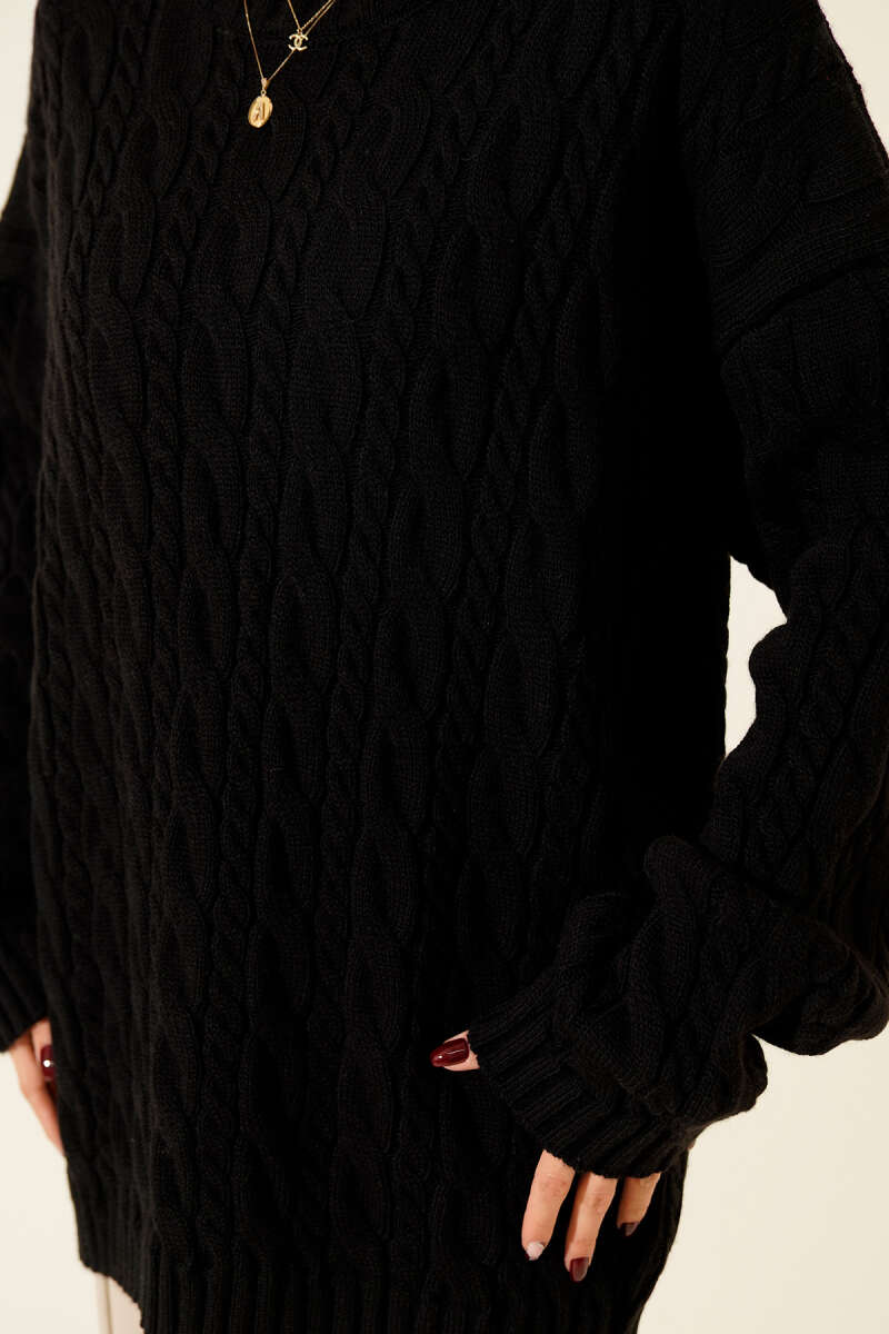 Kol Ribanalı Oversize Triko Tunik Lacivert
