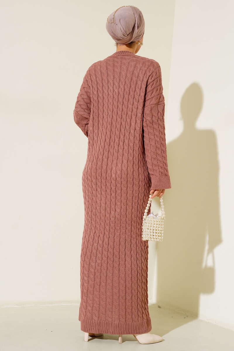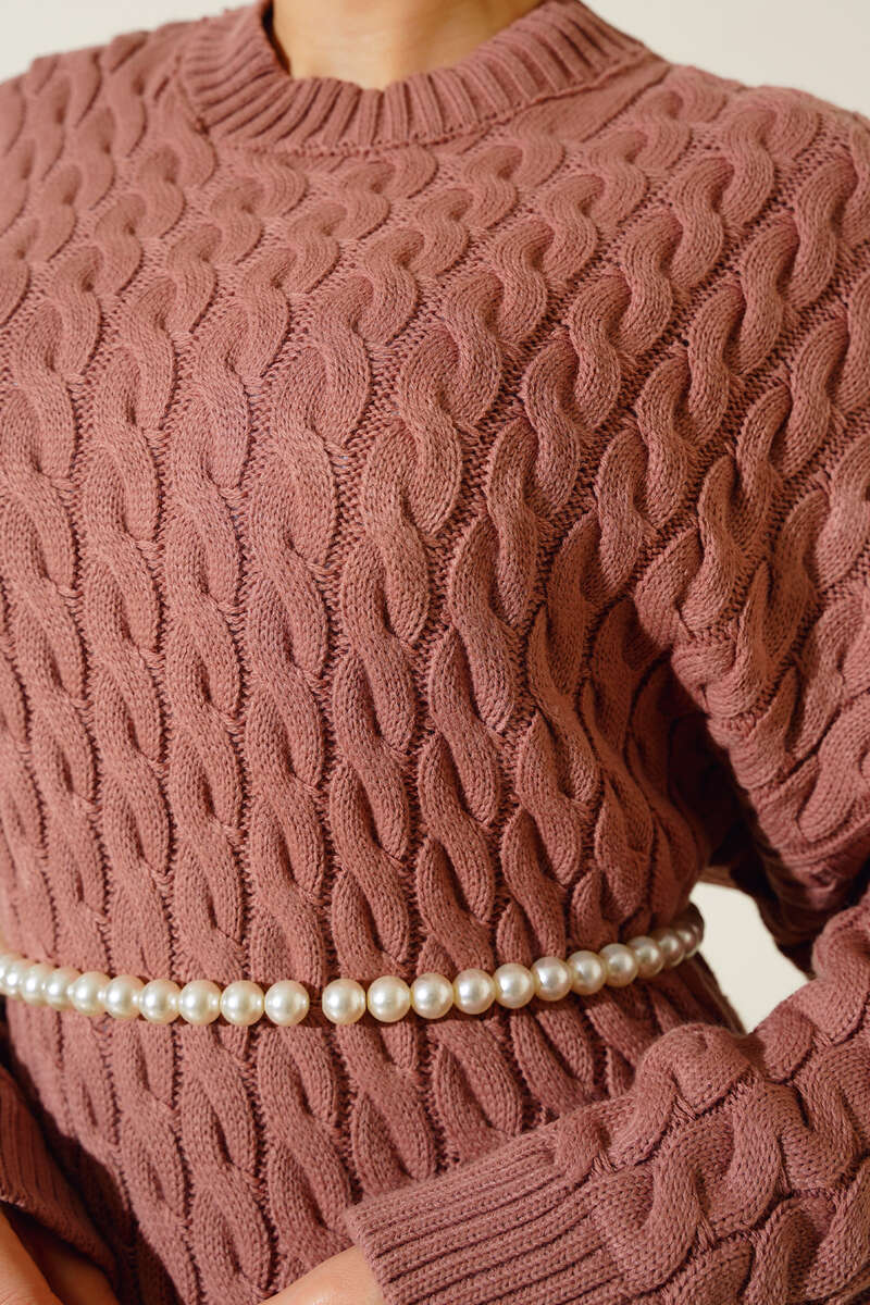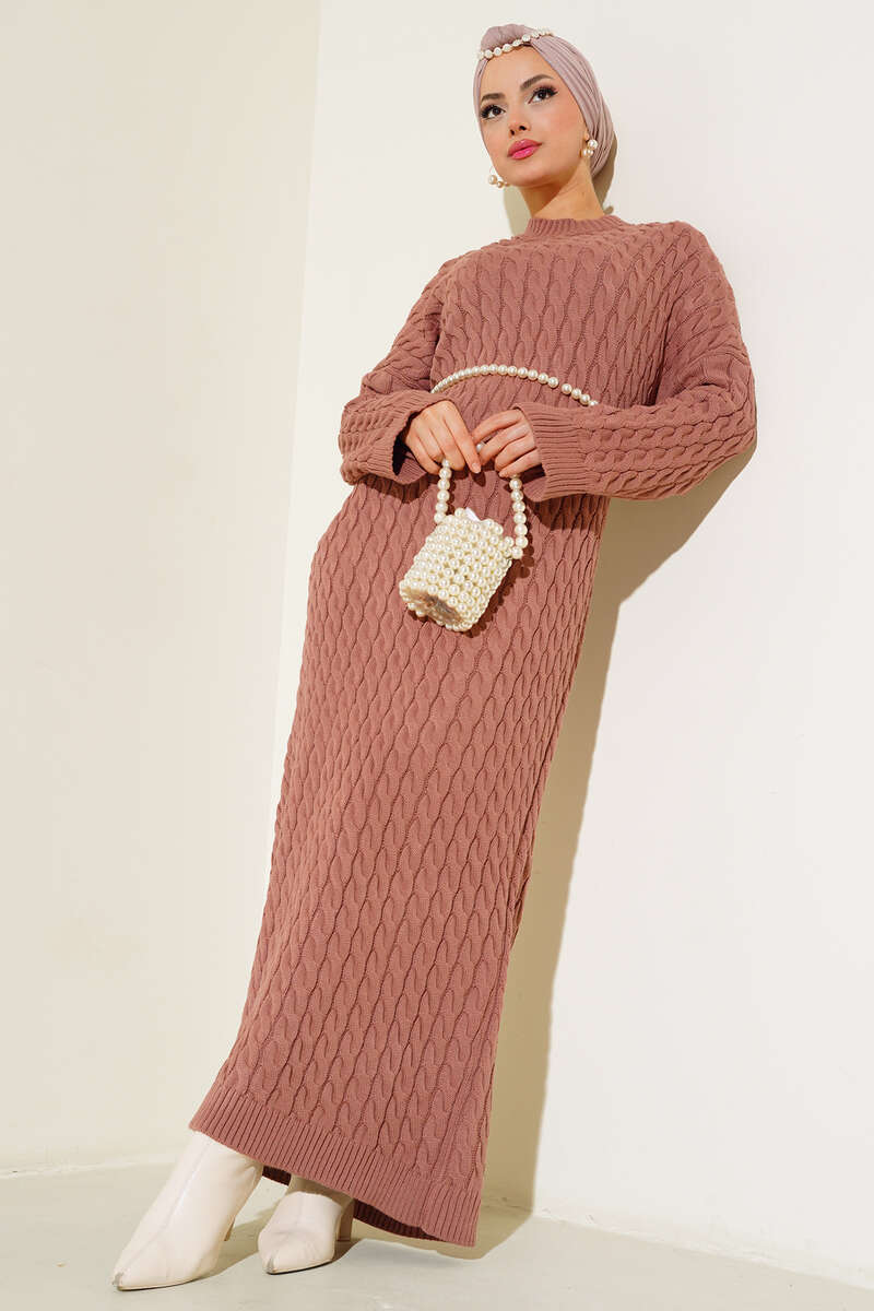 Saç Örgülü Triko Elbise Gül Kurusu