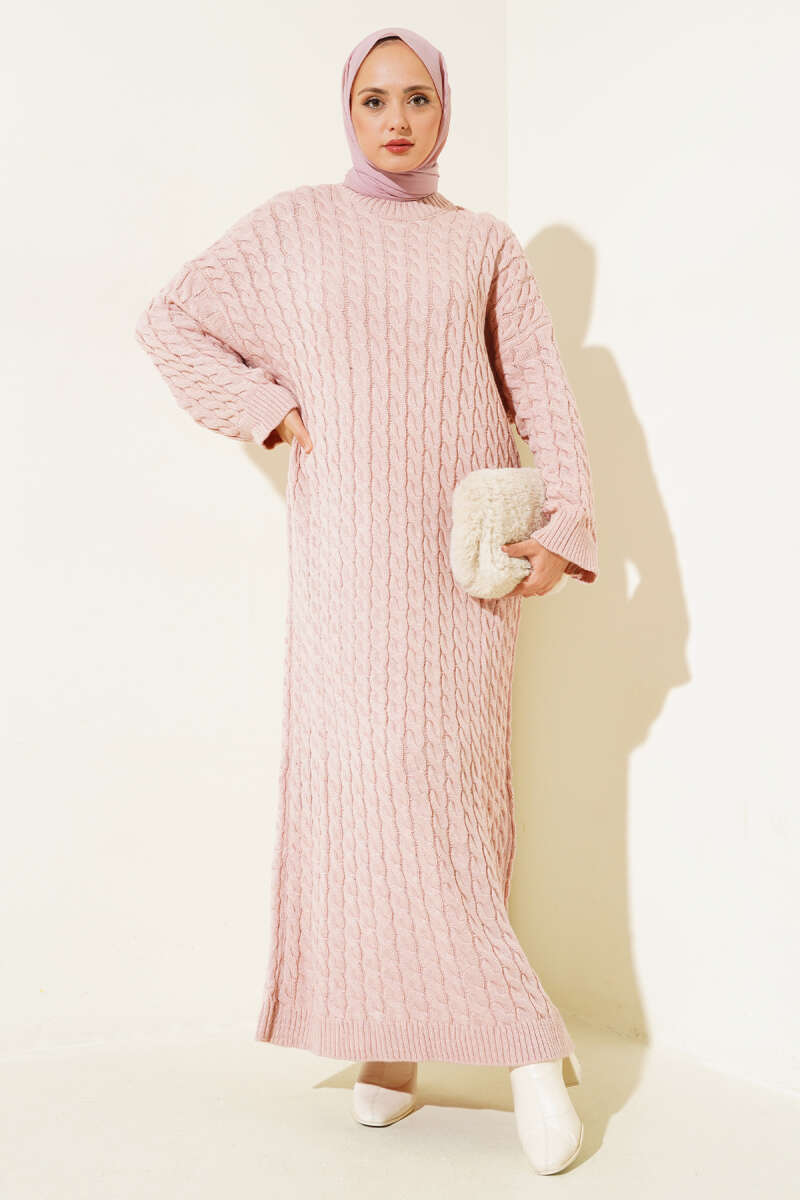 Metal Düğme Süslemeli Bağcıklı Elbise Vizon