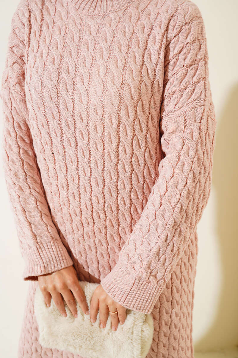 Balıkçı Yaka İp Kuşaklı Triko Elbise Lacivert