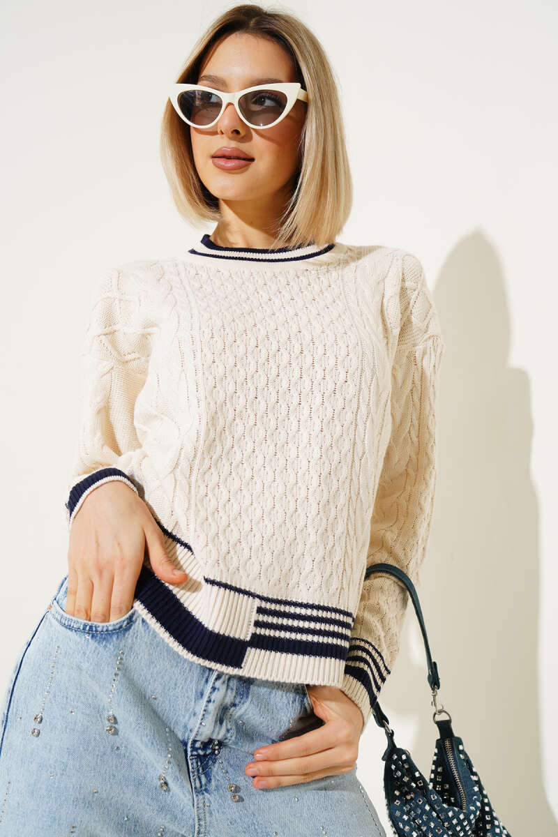 Kabartma Desen Yumoş Triko Tunik Kemik