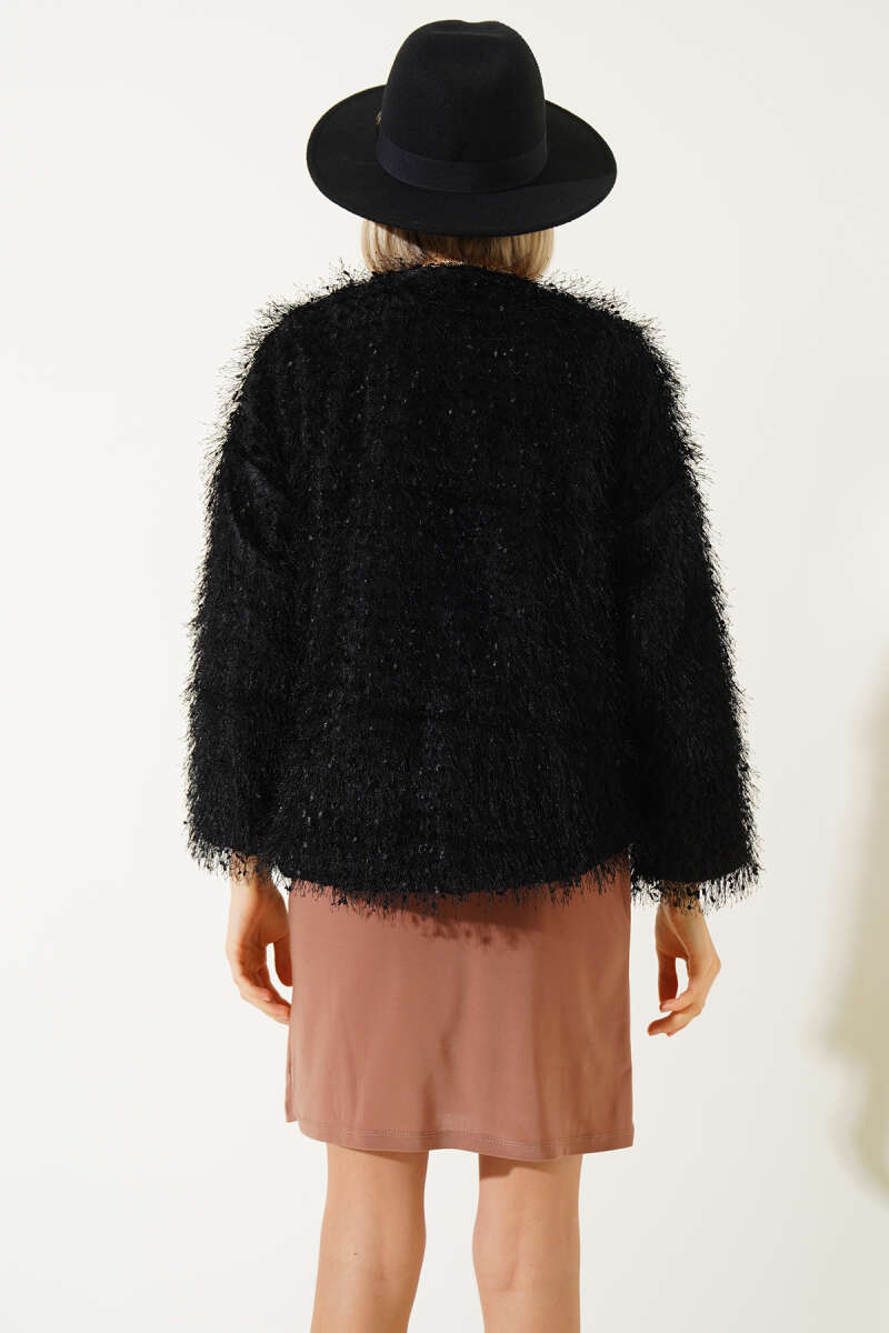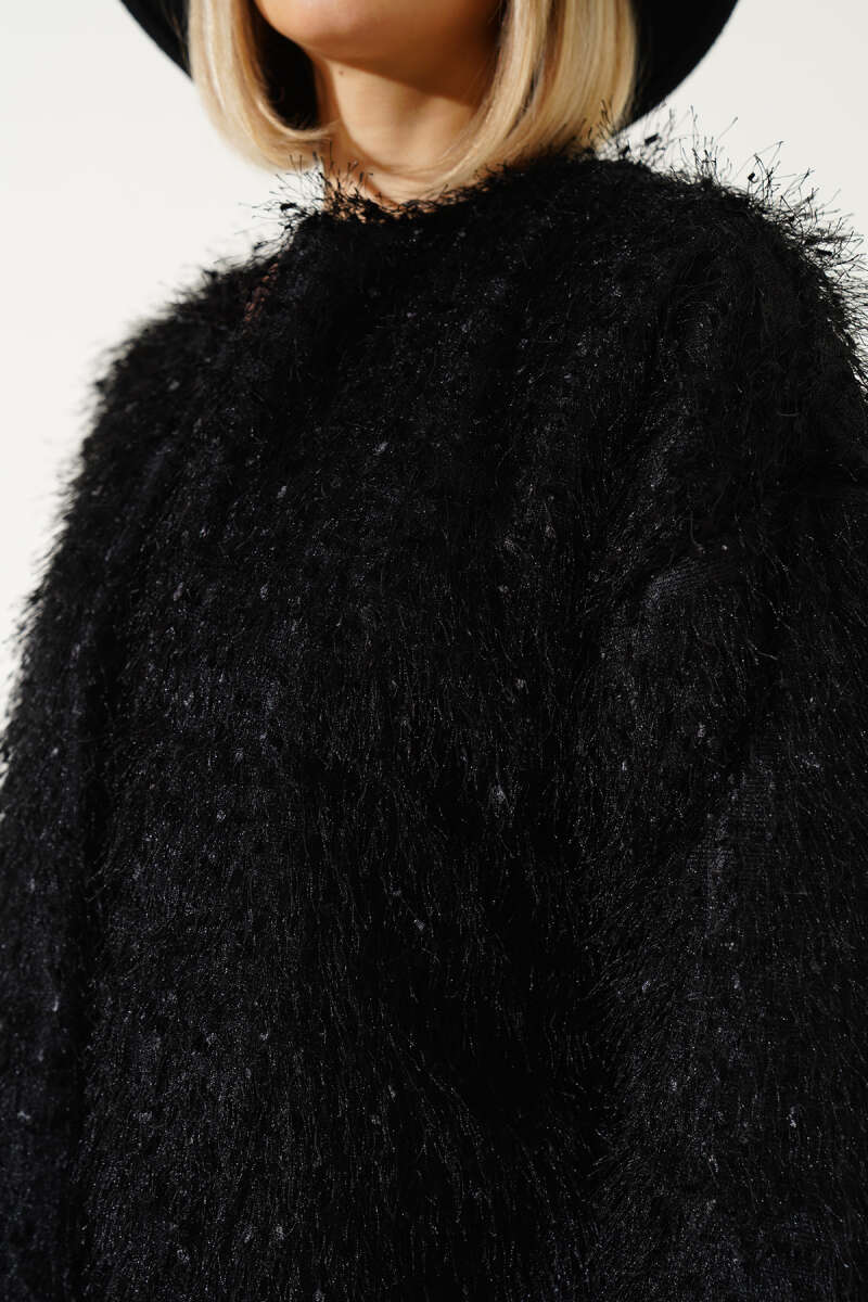 Duble Kol Zikzak Desen Triko Kazak Siyah