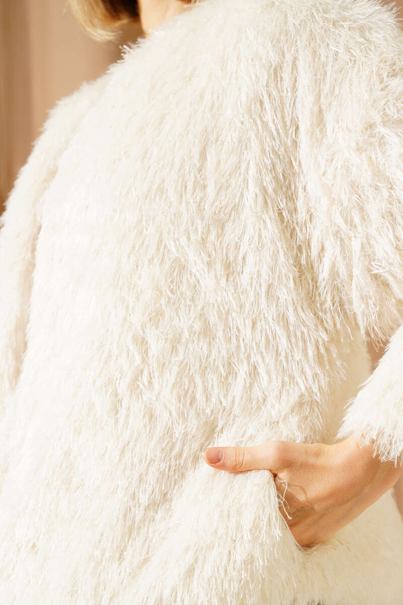 Kruvaze Yaka Salaş Cepli Kürk Mont Gri