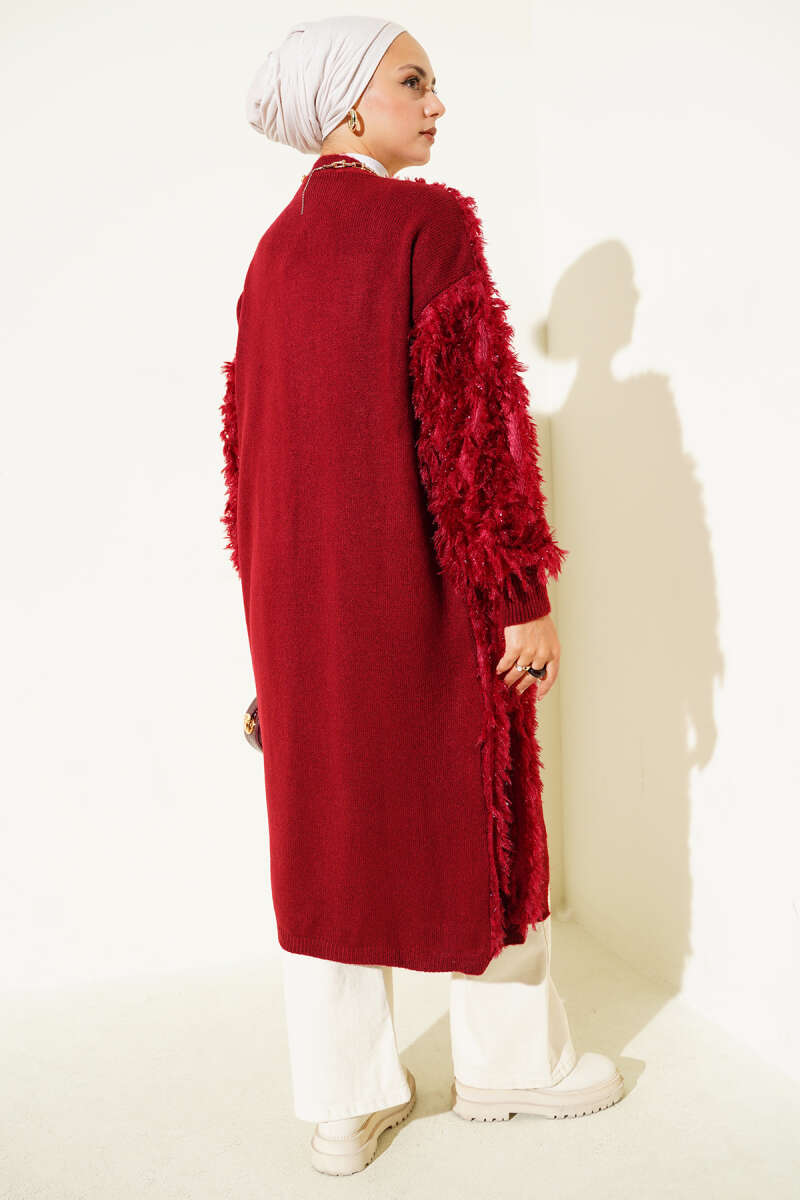 Kapşonlu Çift Cepli Triko Hırka Kırmızı