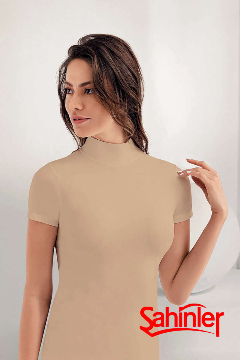 Şahinler Bayan Kısa Kol Dik Yaka Body Ten